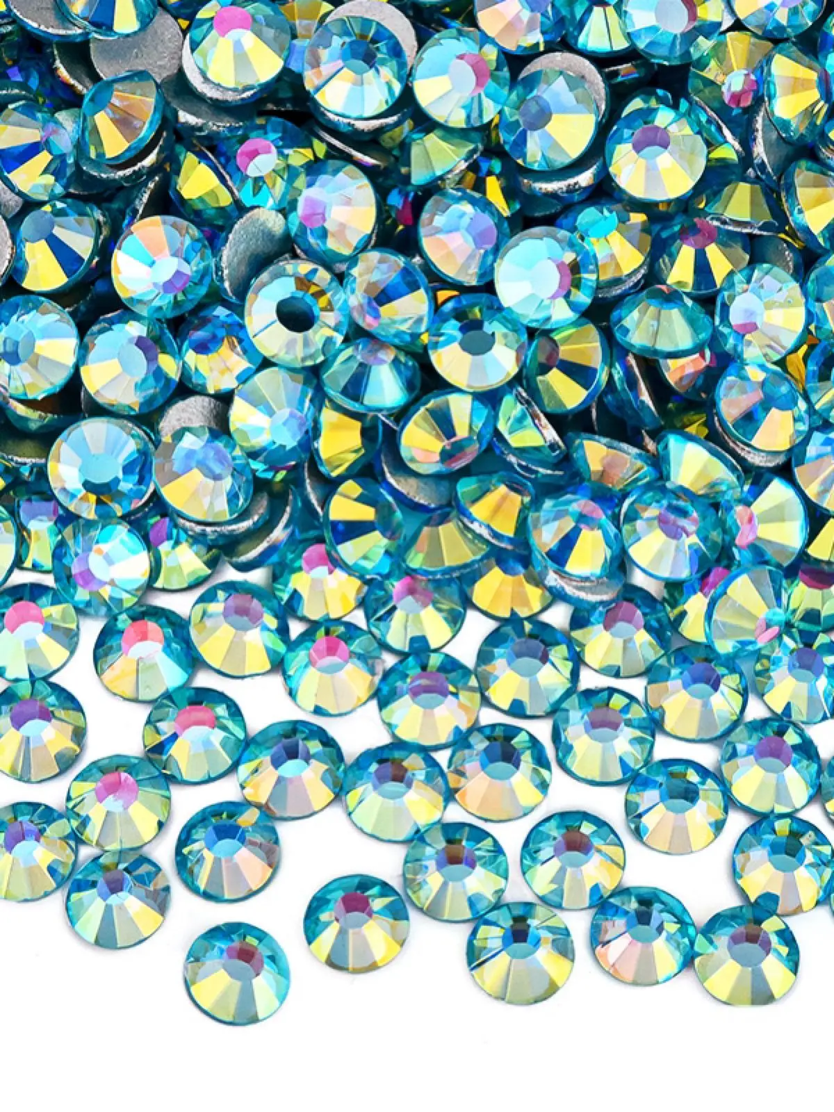 > Стразы без клея сс20 премиум аквамарин голд стекло