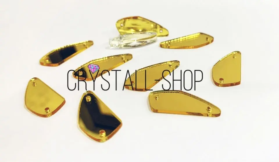 Зеркало пришивное капля гео 25*10 мм золото, в пленке, акрил