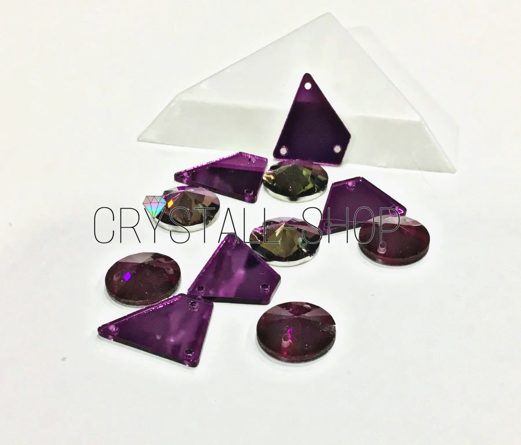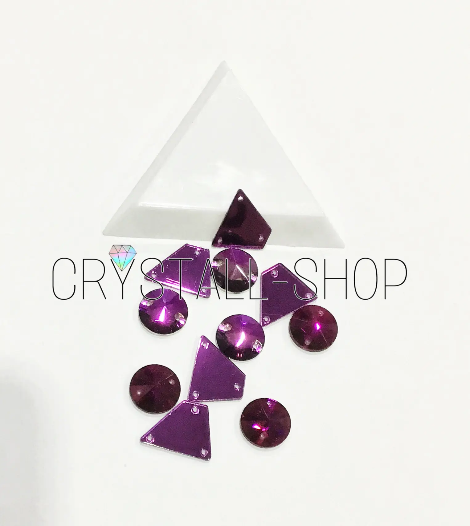 Зеркало пришивное трапеция 20*15 мм аметист, в пленке, акрил