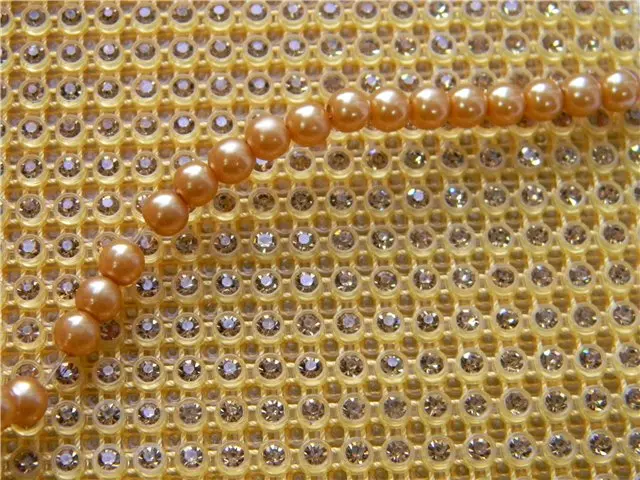 > Стразовое полотно горчичный пластик со вставкам лайт колорадо топаз