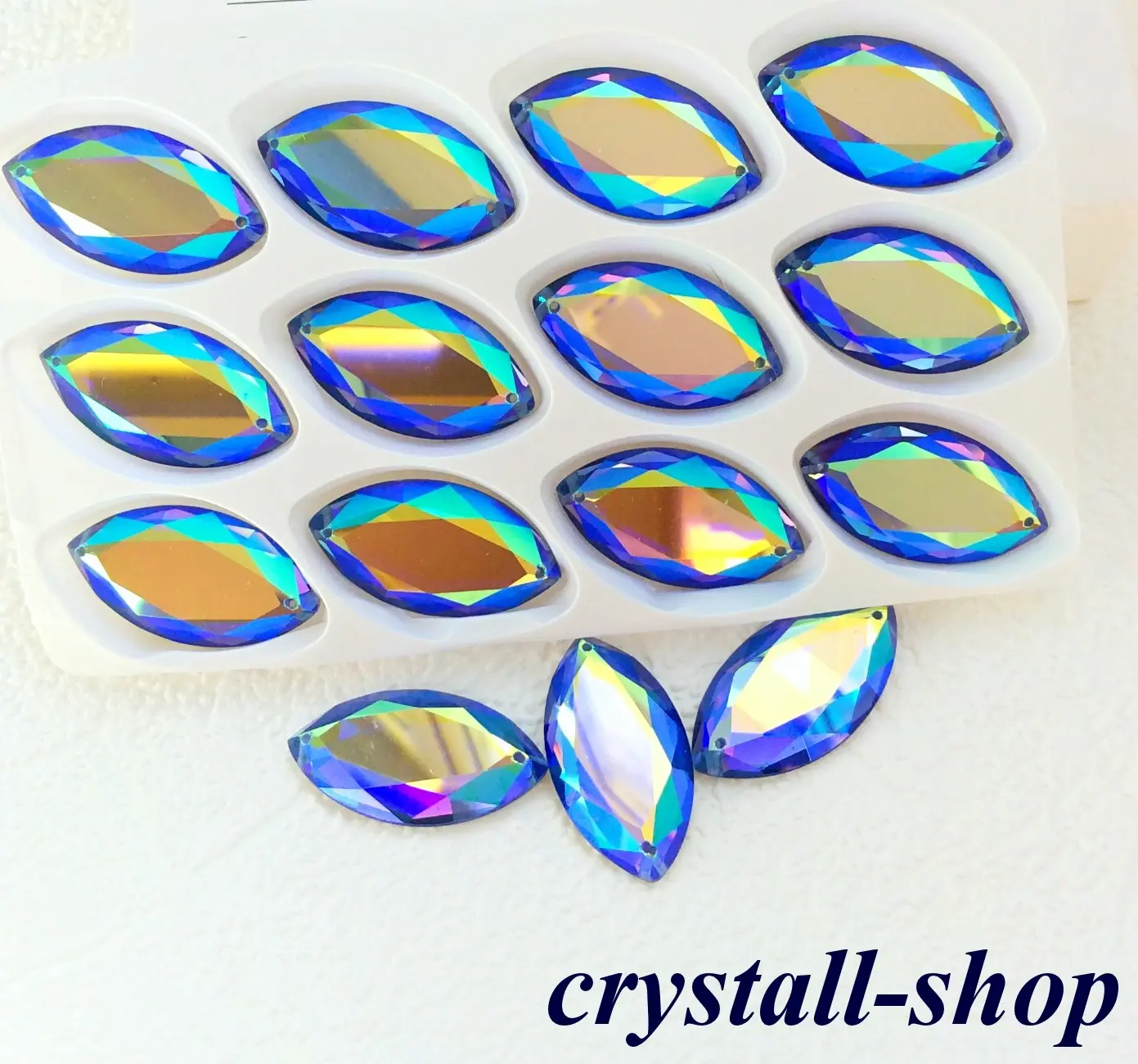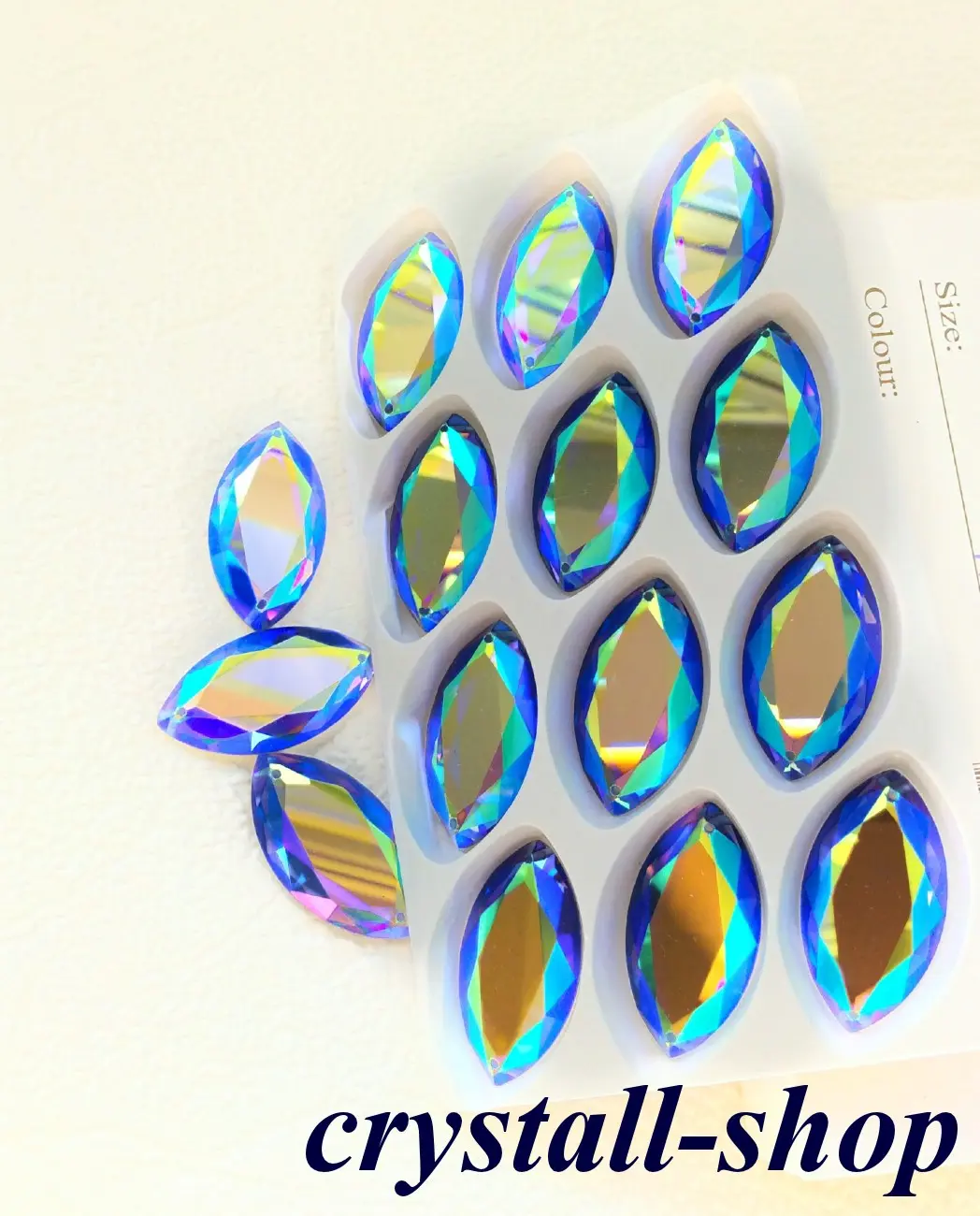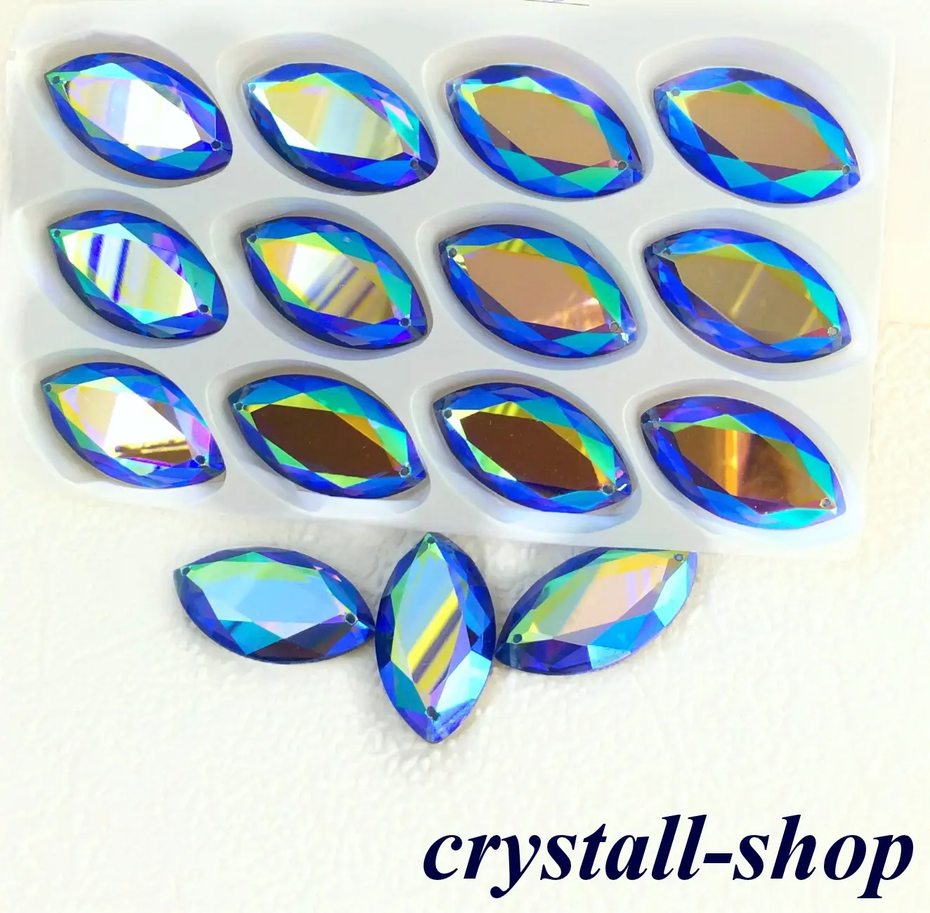 > Маркиза пришивная,32*17, цвет туркуаз/ сапфир АВ, стекло