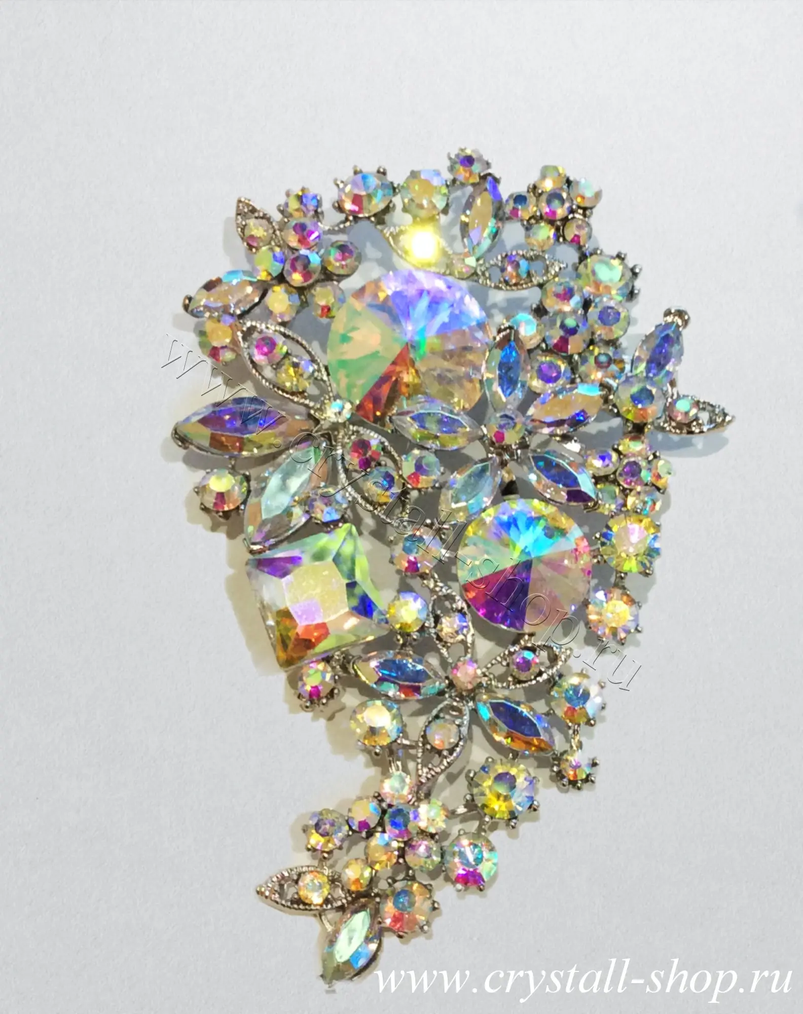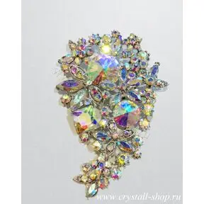 > Брошь "Перо" 9,5*6 см, металл, все камни стекло, АВ