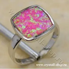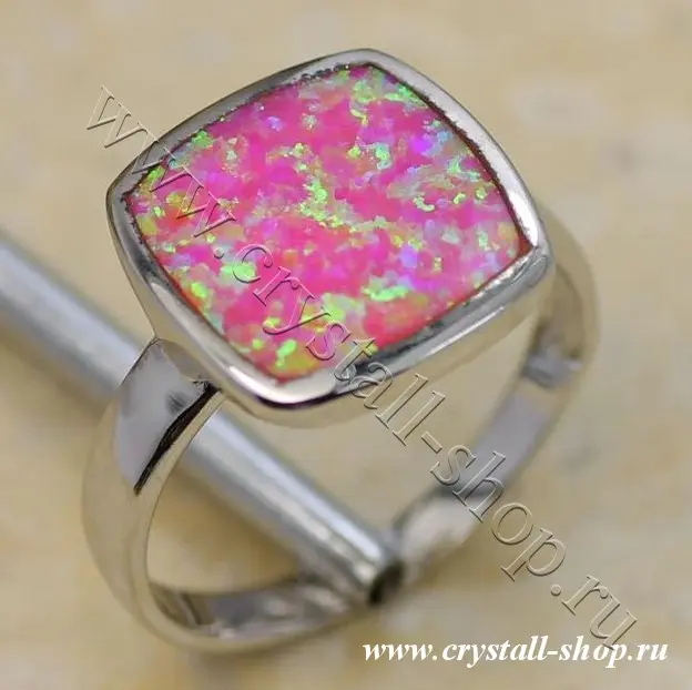 > Кольцо серебро 925 пробы, покрытие белого золота, квадратный элемент, инкрустированный розовым мозаичным опалом, размер 16,8мм