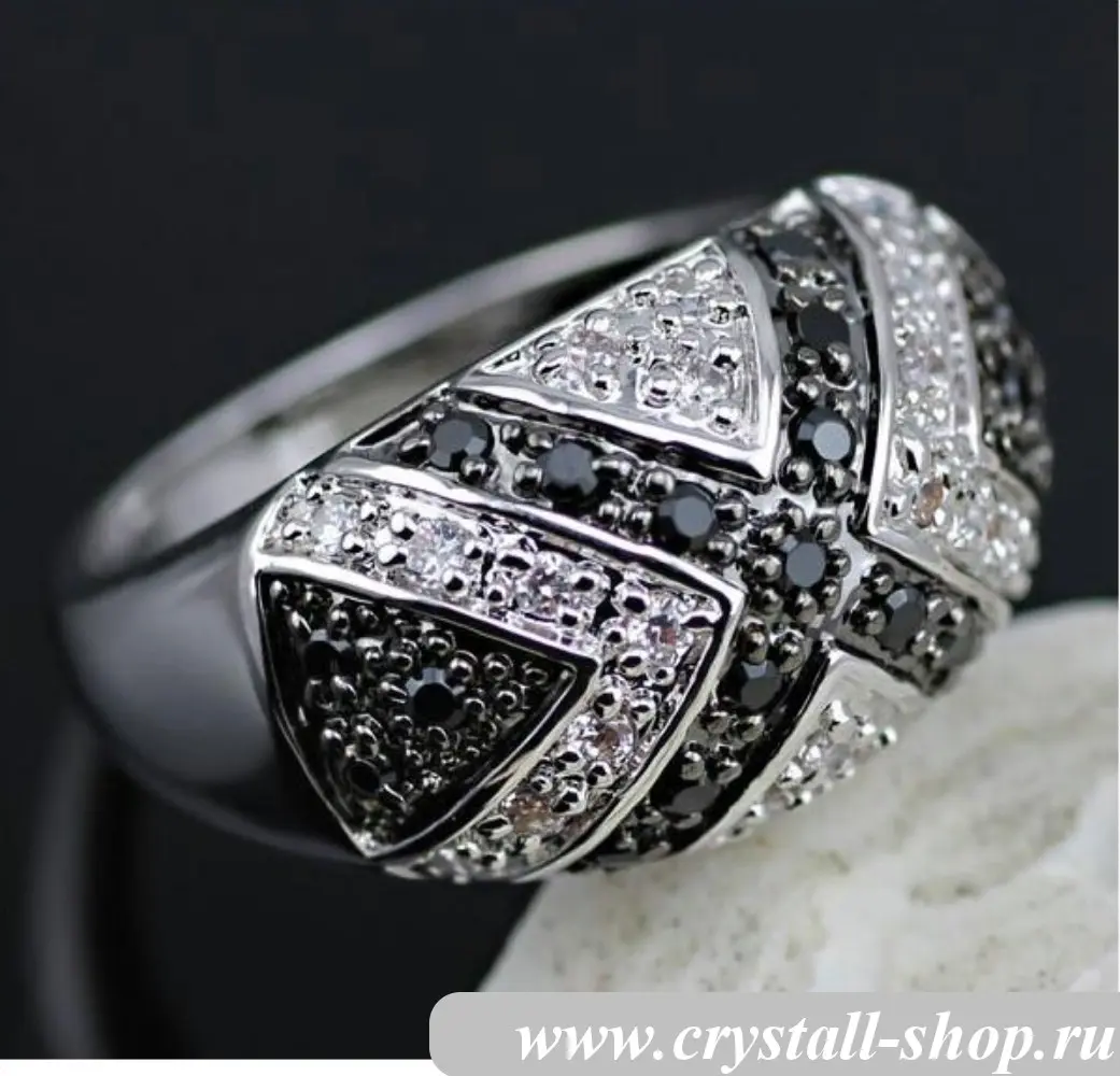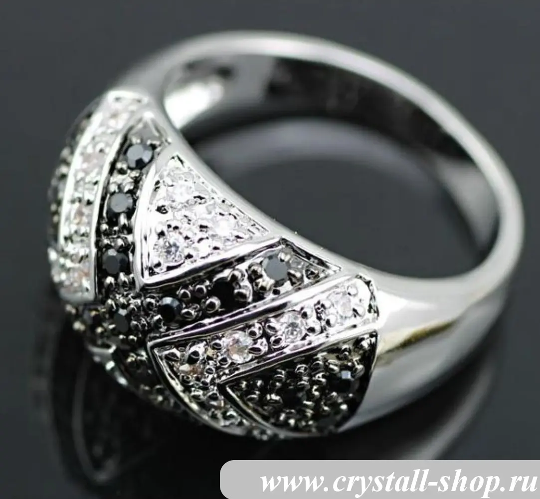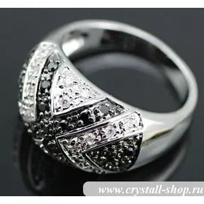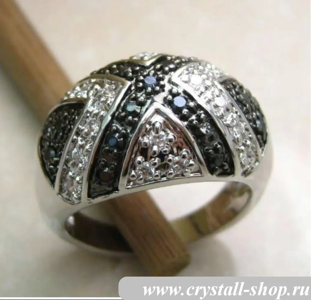 > Кольцо, серебро 925 пр, родиевое покрытие, кольцо в виде чалмы, укаршено черными и прозрачными цирконами, размер 17,0 мм