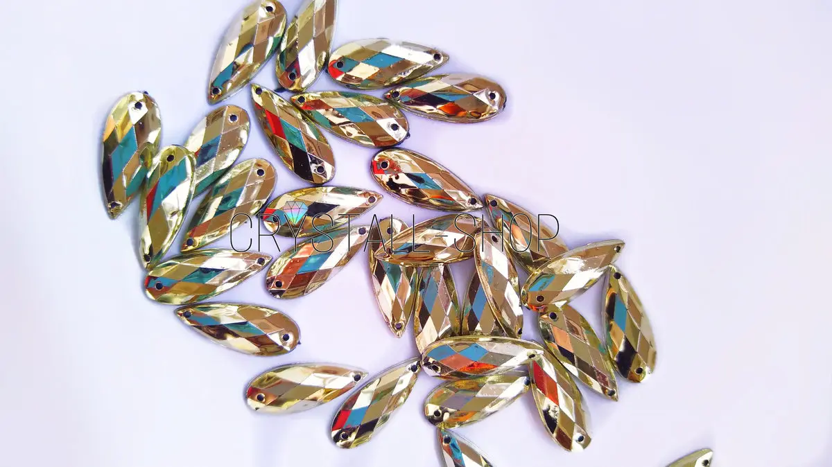> Акрил!! капля вытянутая 8*22 золото металлик