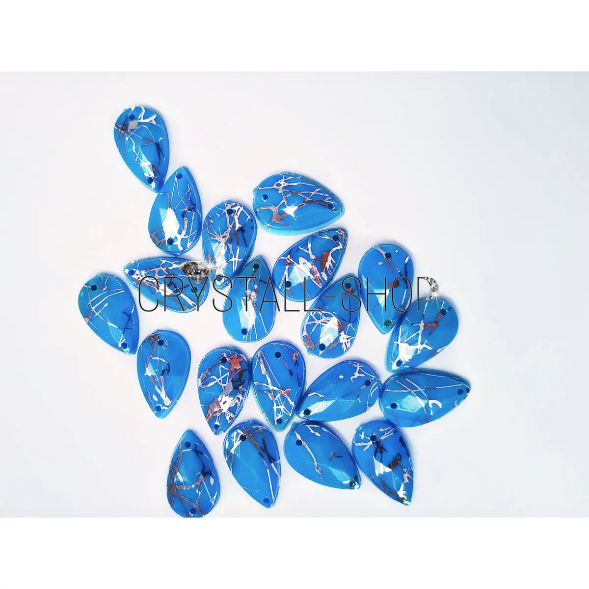 Акрил!!! капля 18*11 голубая с серебряной фольгой