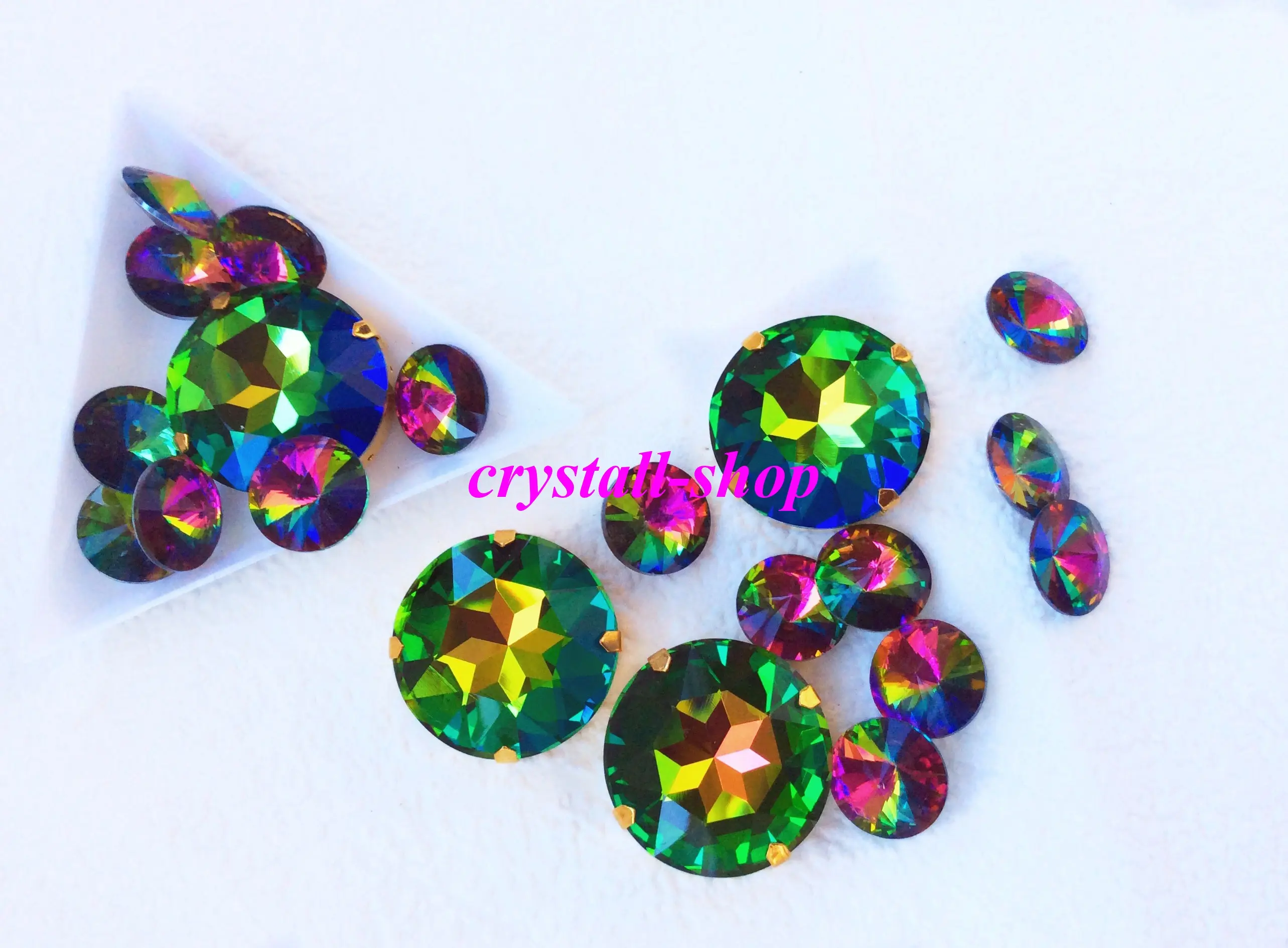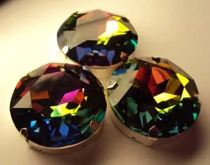 > Круг, риволи в цапах стекло 14, 27 мм витрал медиум, павлин