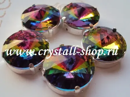 Круг, риволи в цапах стекло 14, 27 мм витрал медиум, павлин