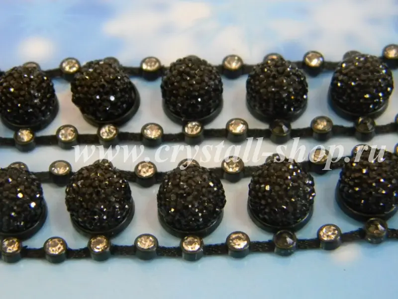 > Декоративная цепь Шарики Аллстарз джет ширина 18мм, шарик 1см, акрил
