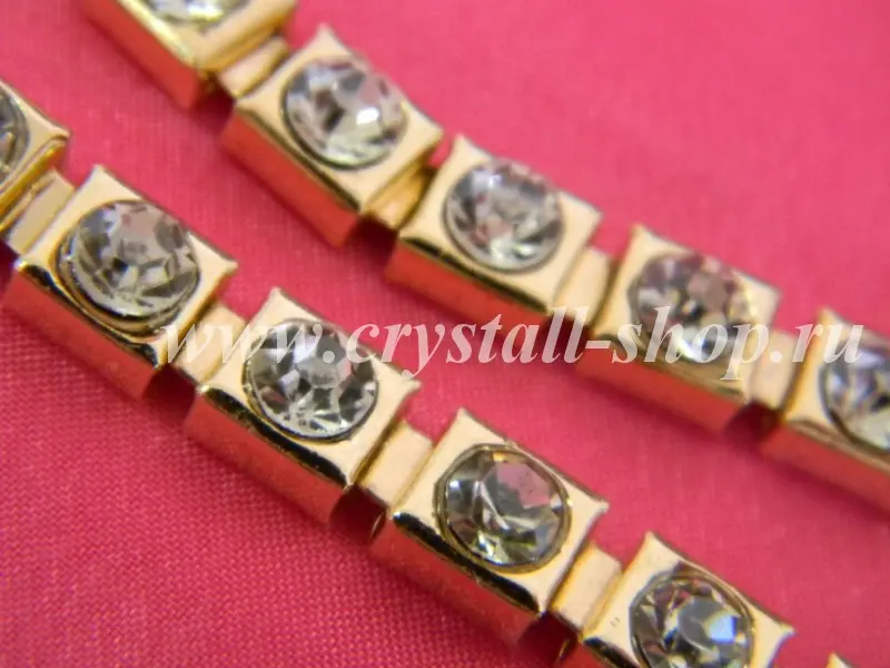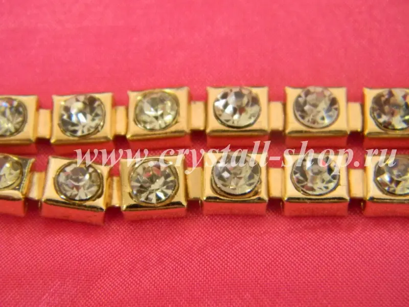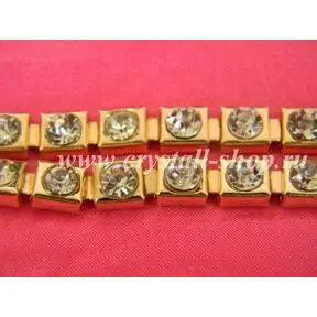 > Стразовая цепь квадратиками золото вставки сс20, ячейка 6*7 мм