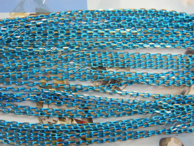Цепь декоративная, голубая с золотыми насечками, 1 звено 2*3 мм, металл