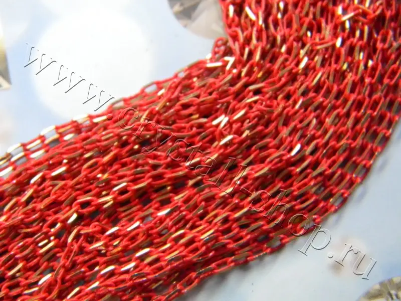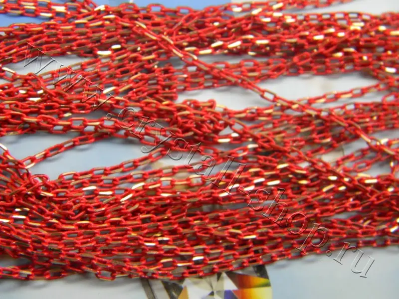 > Цепь декоративная, красная с золотыми насечками, 1 звено 2*3 мм, металл