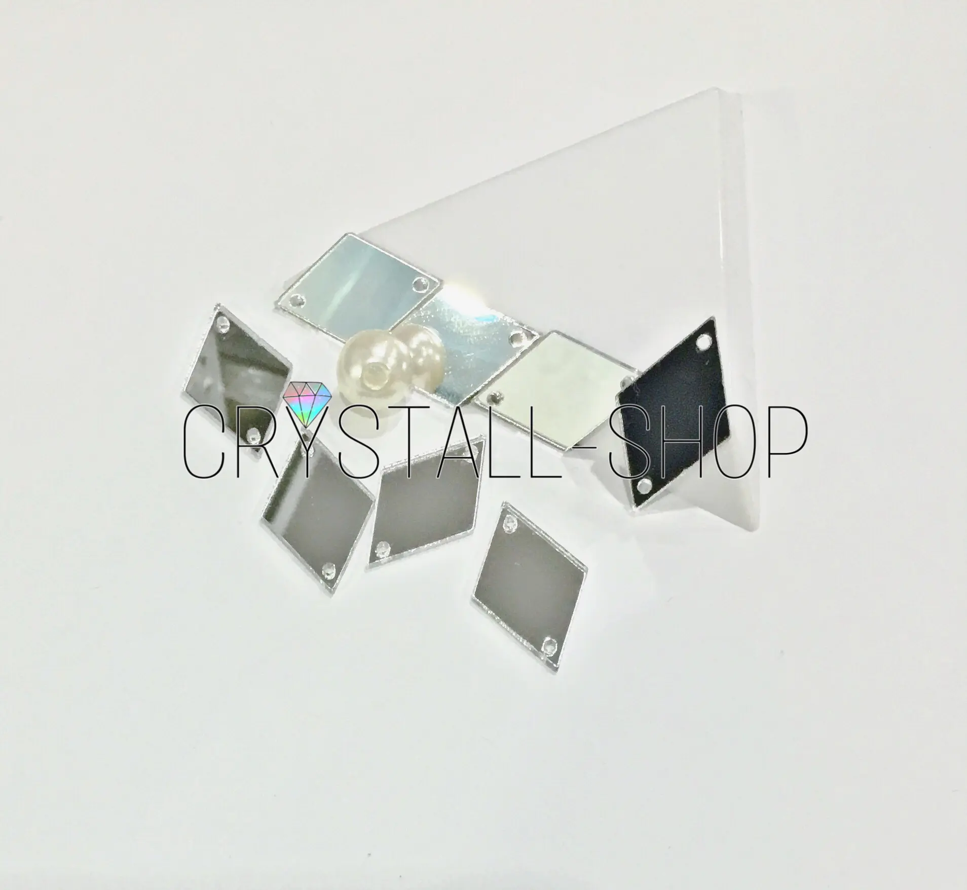 Зеркало пришивное ромб 25*15мм кристал, в пленке, акрил