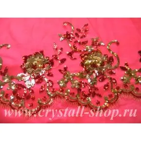 > Тесьма на сетке красная с золотом,1 ряд 28см. в ширину