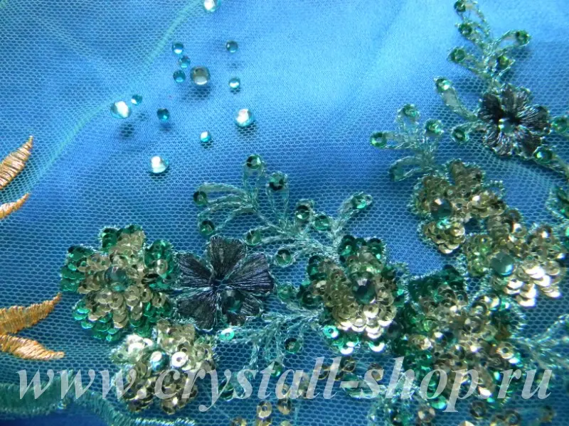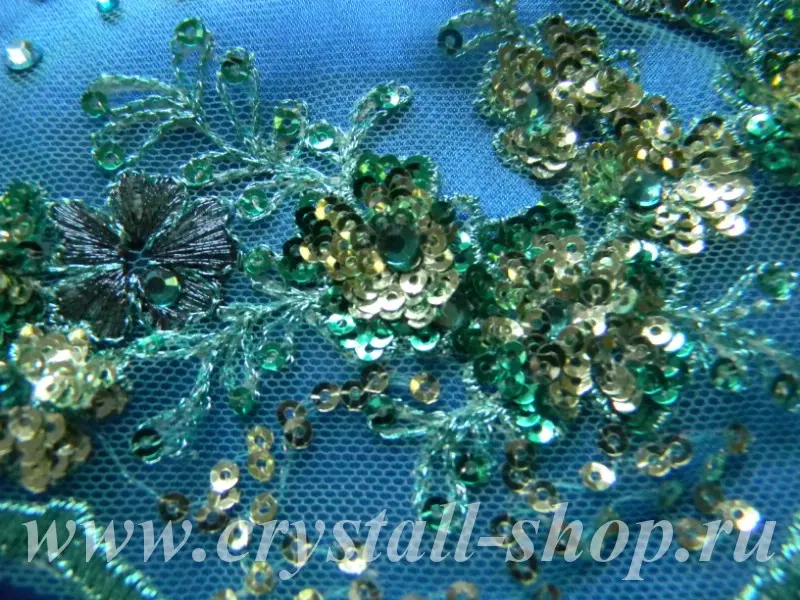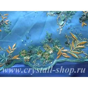 > Тесьма на сетке сине-бирюзовая+стразы из пайеток 24см ширина