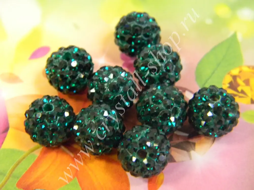 > Бусина шамбала 10мм изумруд