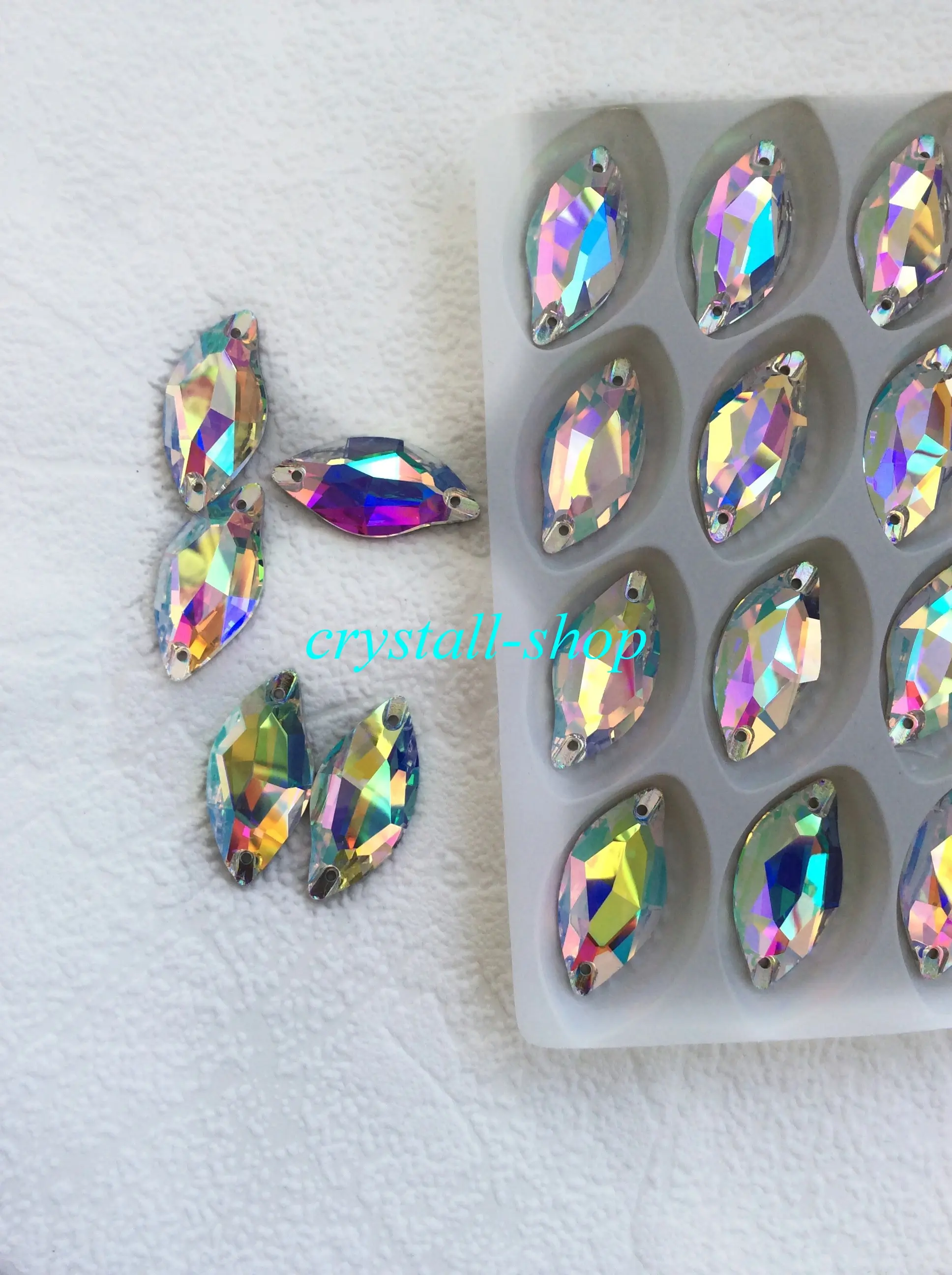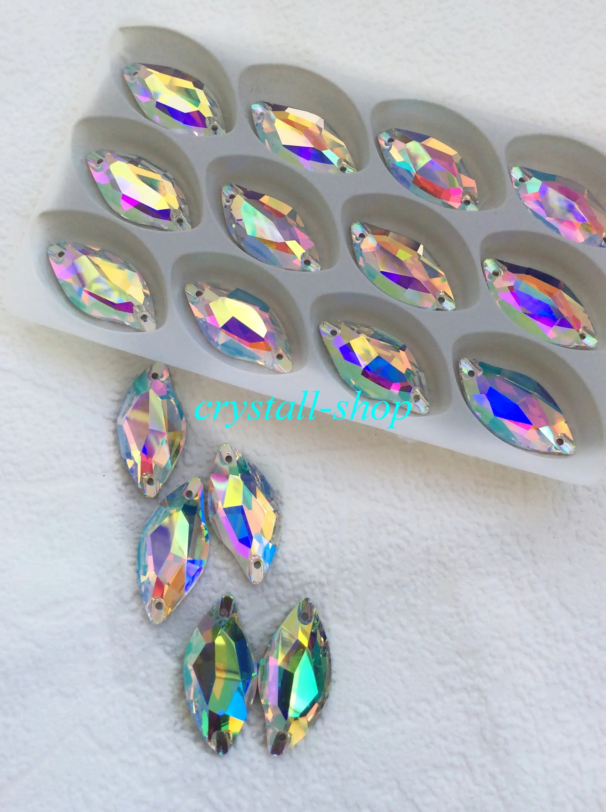 Страза пришивная лепесток 30*14 АВ стекло премиум