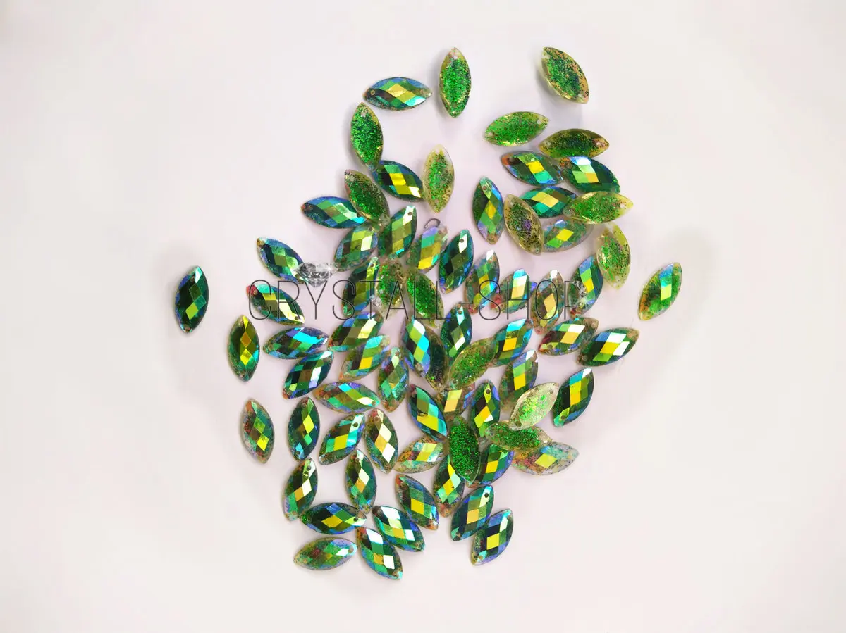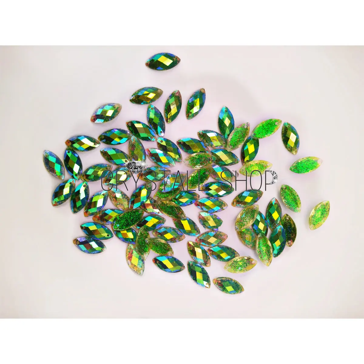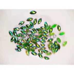 Акрил!!! лодочка 7*15 перидот АВ с блестками стекляный блеск