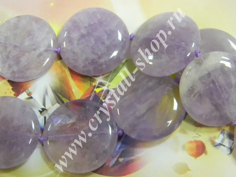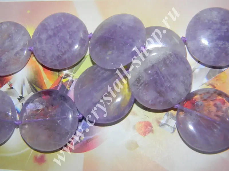 > Аметист натуральный, круги 25 мм, сквозное отверстие