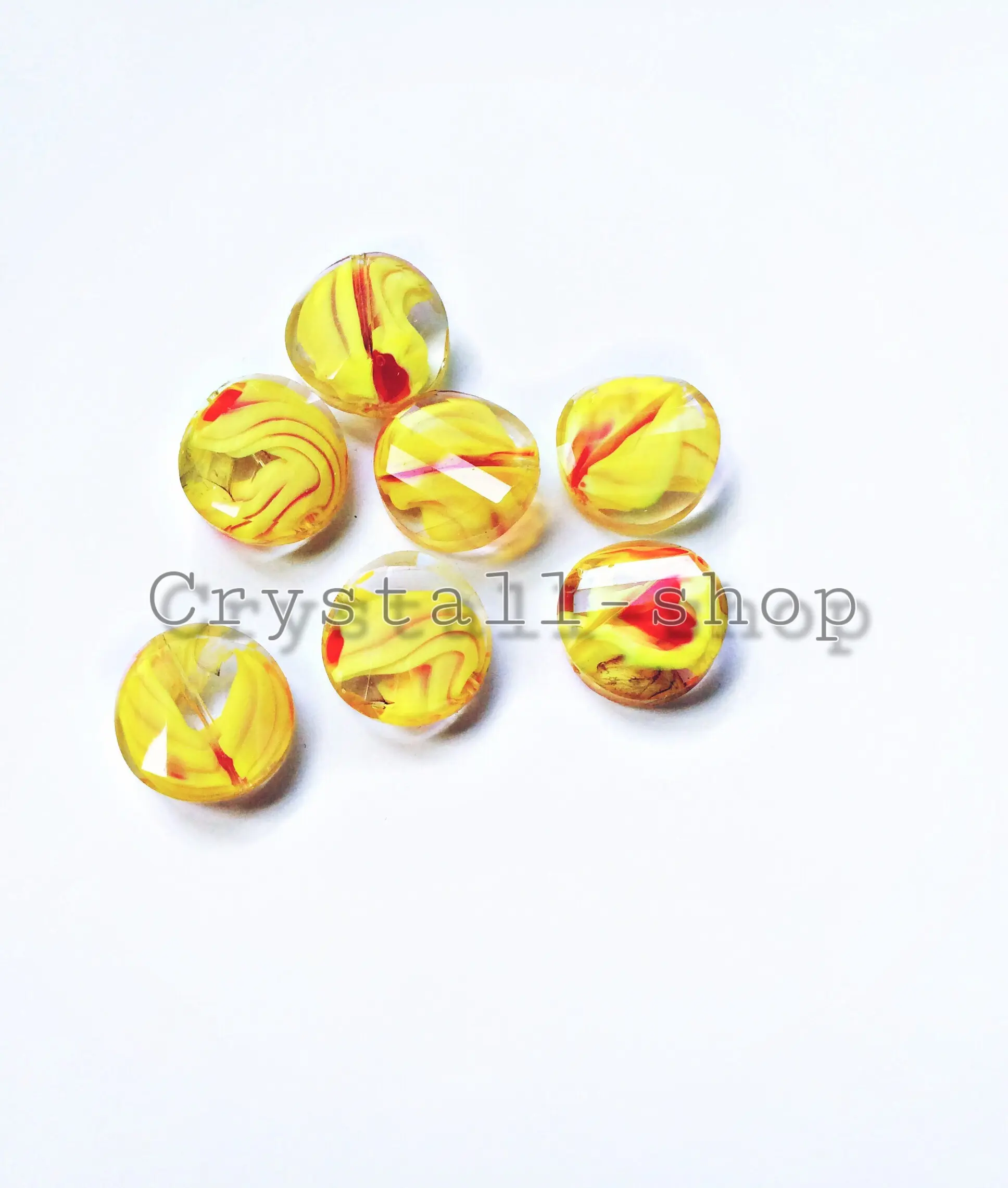 > Бусина изогнутый круг 17мм желто-красный, хрусталь