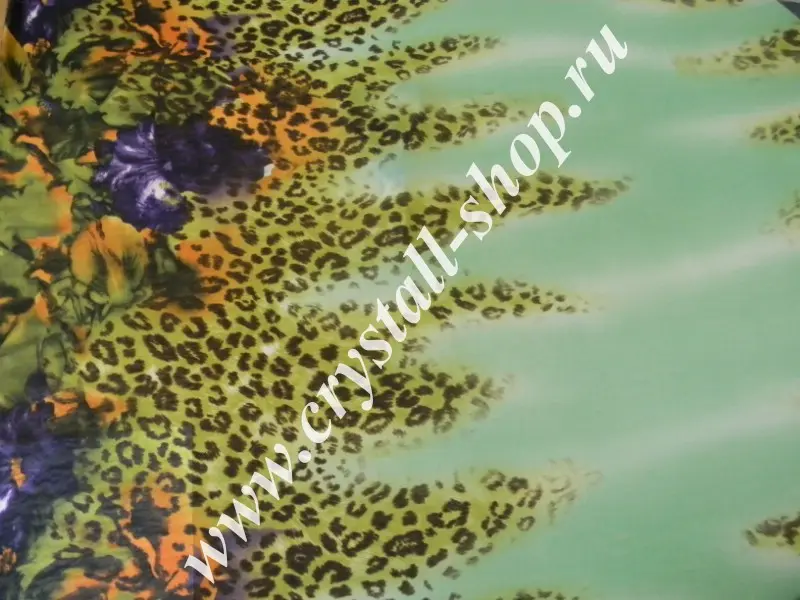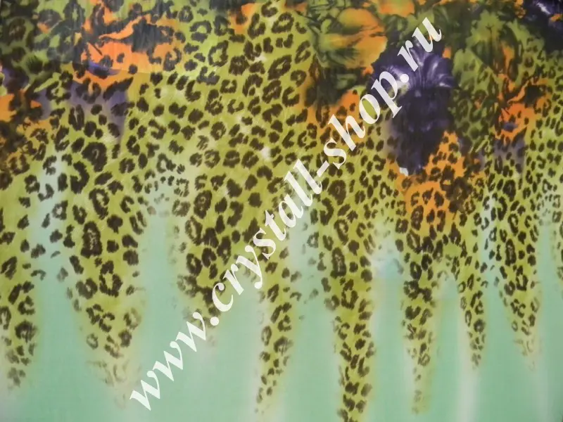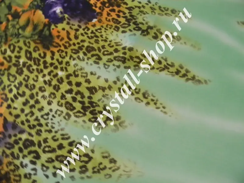 Шифон мятно-оливковый, принт гепард 1,5 метра ширина
