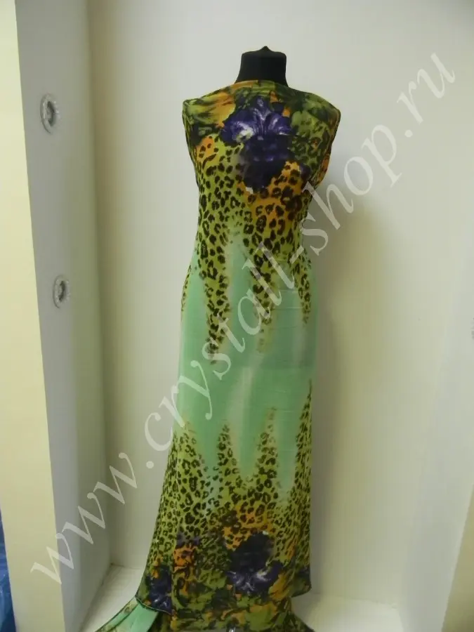 > Шифон мятно-оливковый, принт гепард 1,5 метра ширина