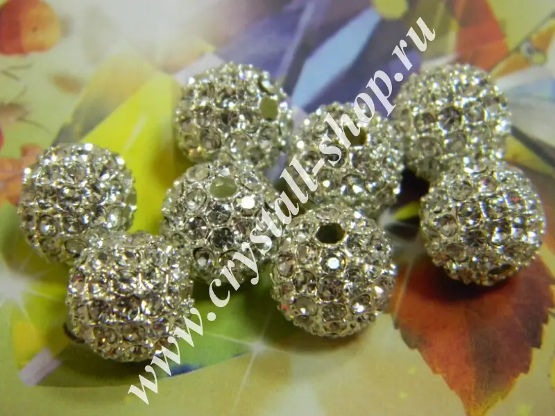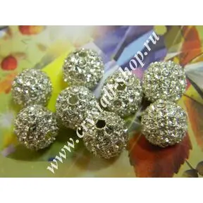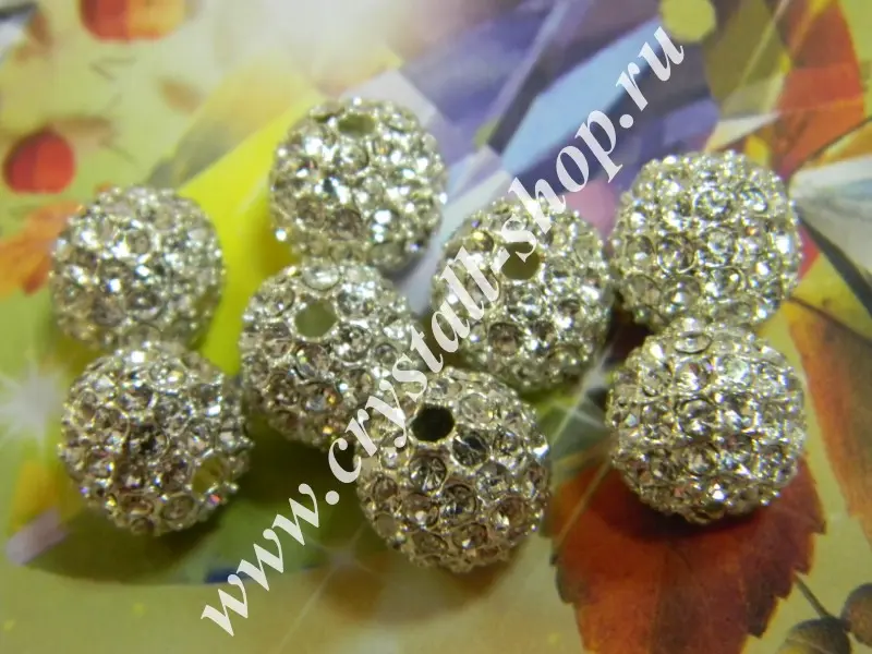 > Стразовый шарик серебро кристал 8мм металл ЛЮКС