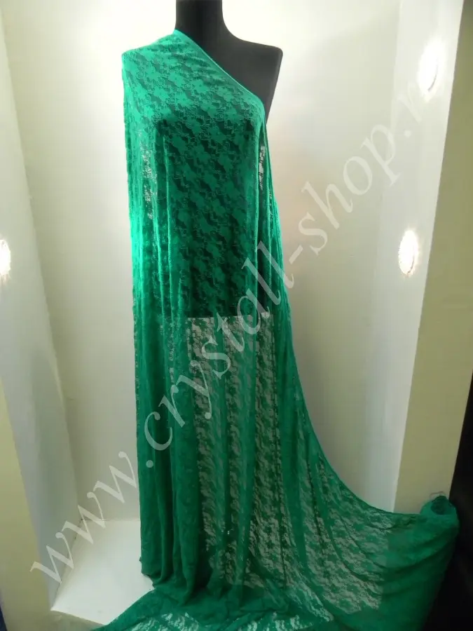> Гипюр-стрейч, яркий изумрудно-зеленый, хорошо тянется, ширина 1,5м