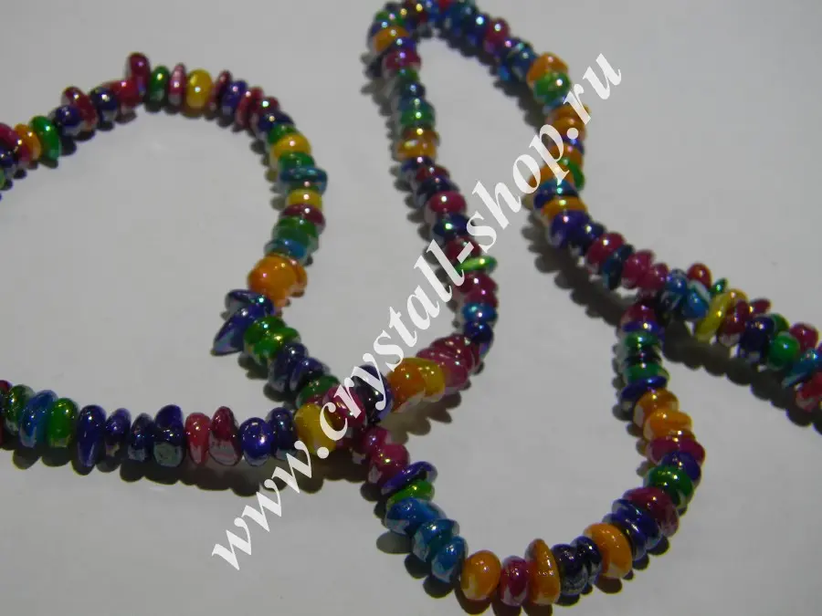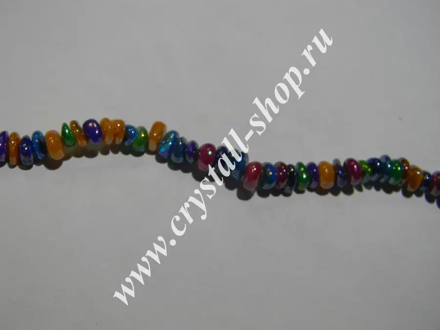 > Бусины разноцветные плоские на нитке 6-8 мм, цена за нитку