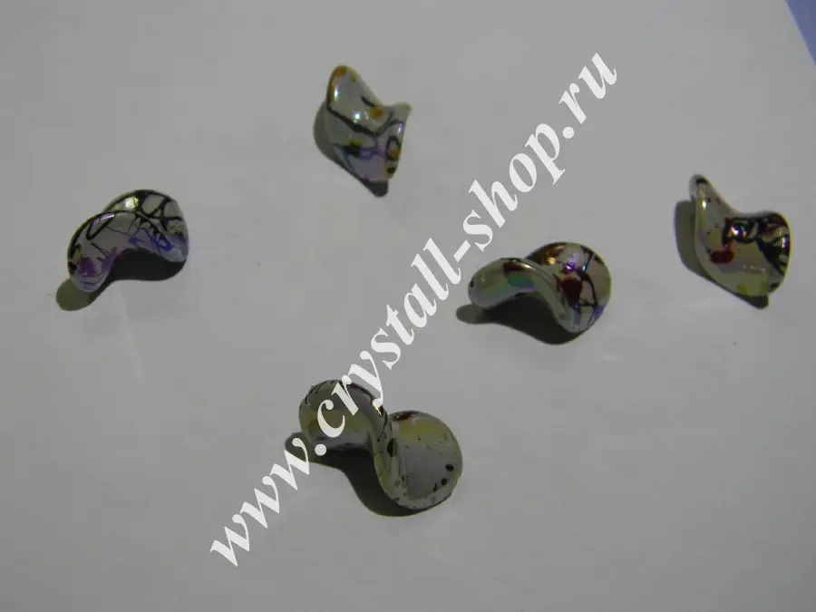 Бусина акриловая, цветные черточки, изогнутый круг, 27*16 мм, разные цвета