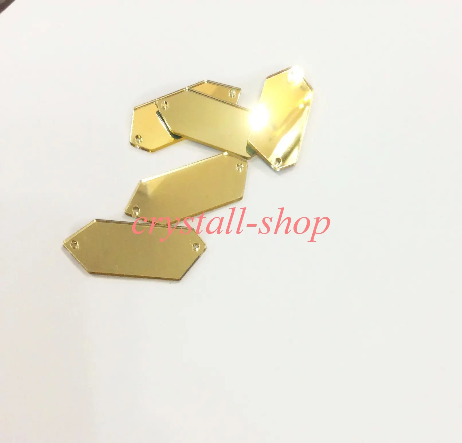 > Зеркало пришивное неровный прямоугольник 41*17 мм золото, в пленке, акрил