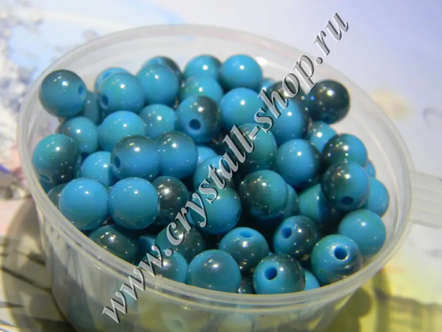 Бусина двухцветная, глазированная 8мм голубая акрил