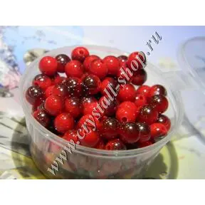 > Бусина двухцветная, глазированная 8мм красная акрил