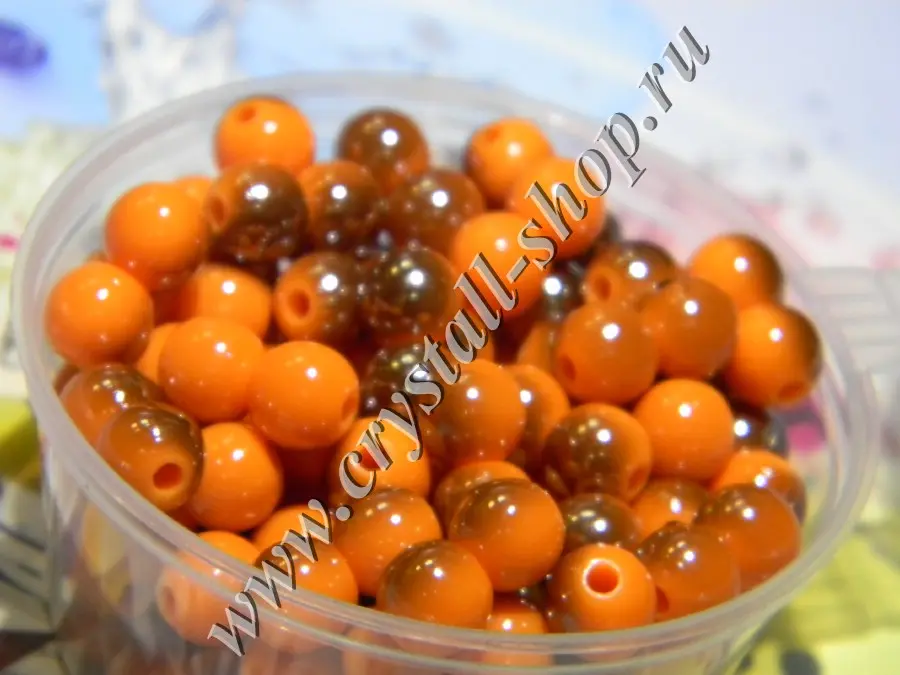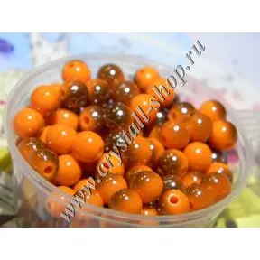 > Бусина двухцветная, глазированная 8мм оранжевая акрил