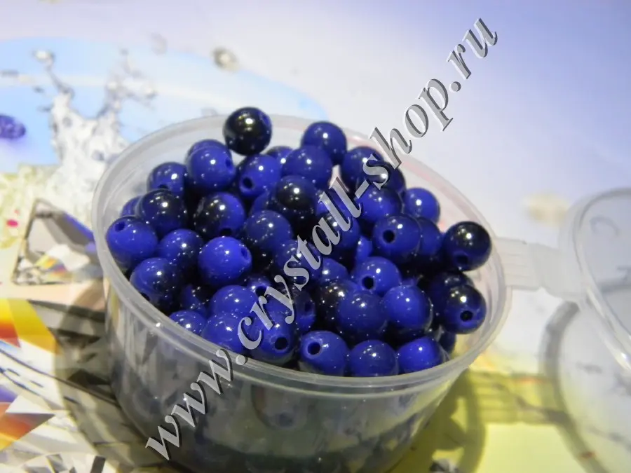 > Бусина двухцветная, глазированная 8мм синяя акрил