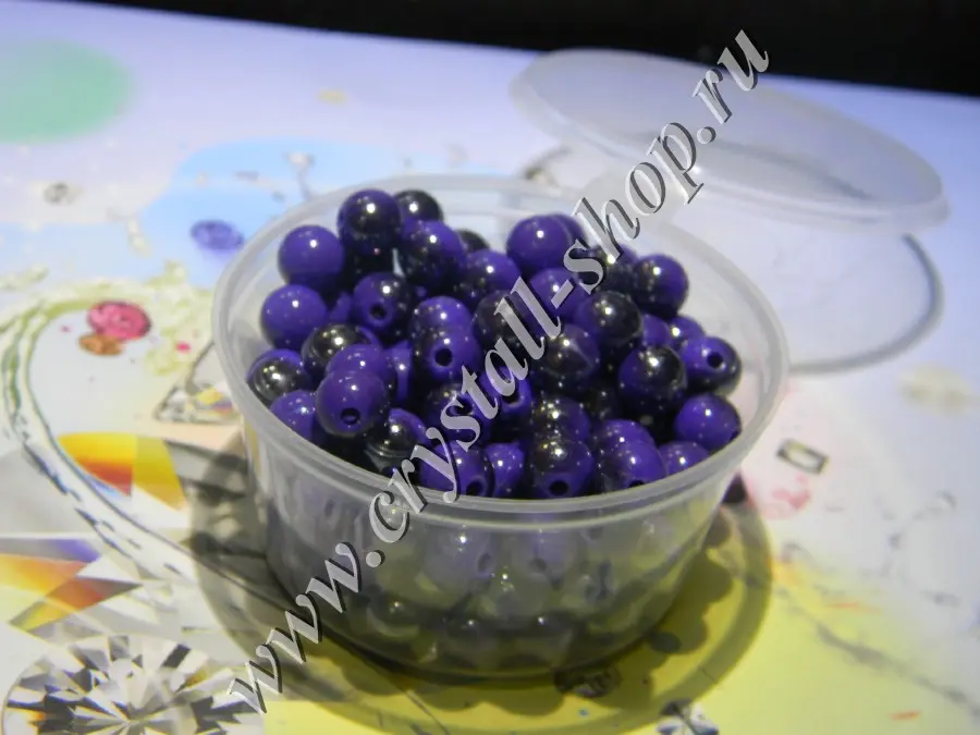 > Бусина двухцветная, глазированная 8мм фиолетовая акрил