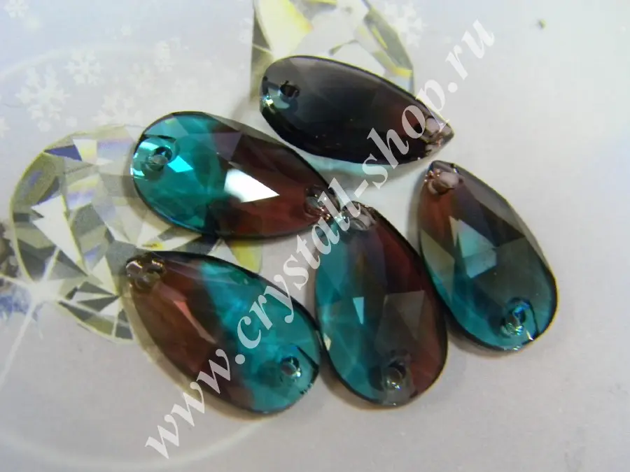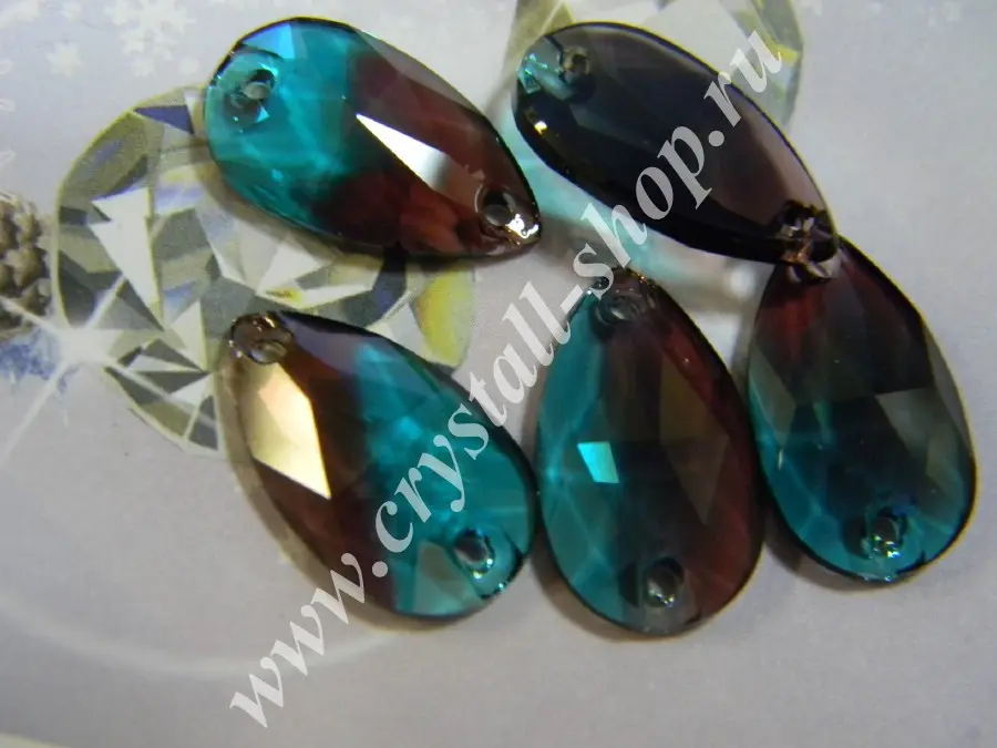 > Капли Сваровски 18*11 блю циркон-бургунди блэнд анфойлед