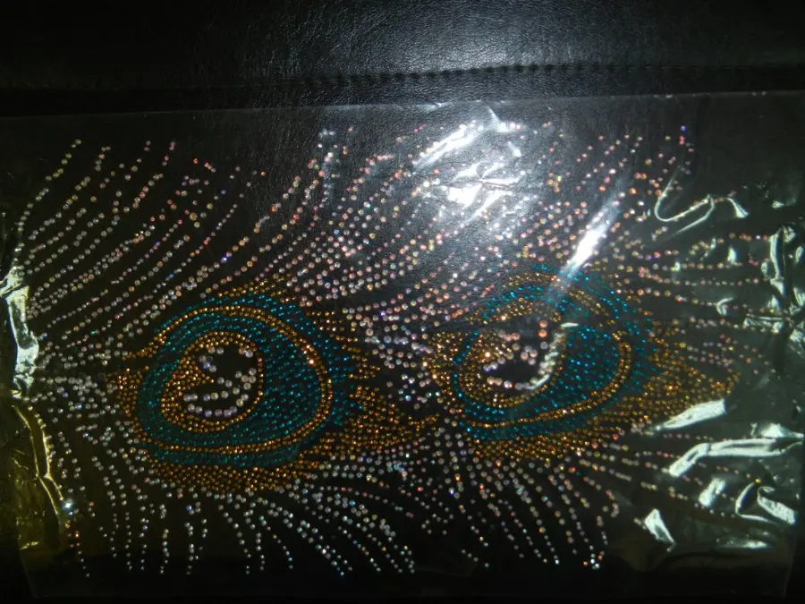 > Термоаппликация из страз "Перо павлина цветное большое" 25*40 см.