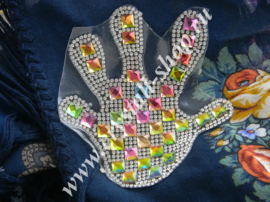 > Термонакладка ладонь, квдратики павлин 11*12 см