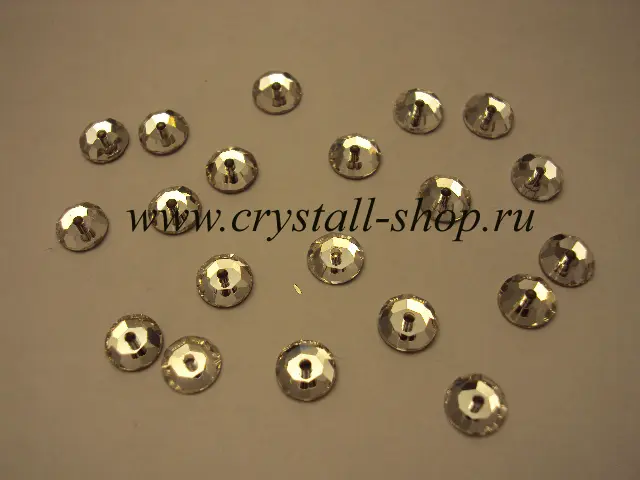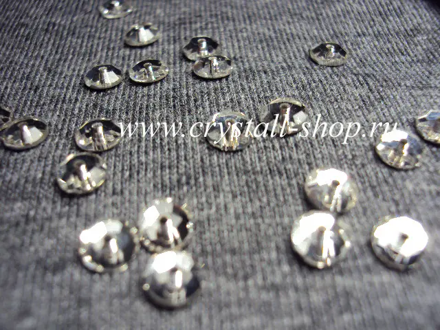 Стразы с плоским фольгированным дном, с отверстием для пришивания посередине, материал хрусталь,