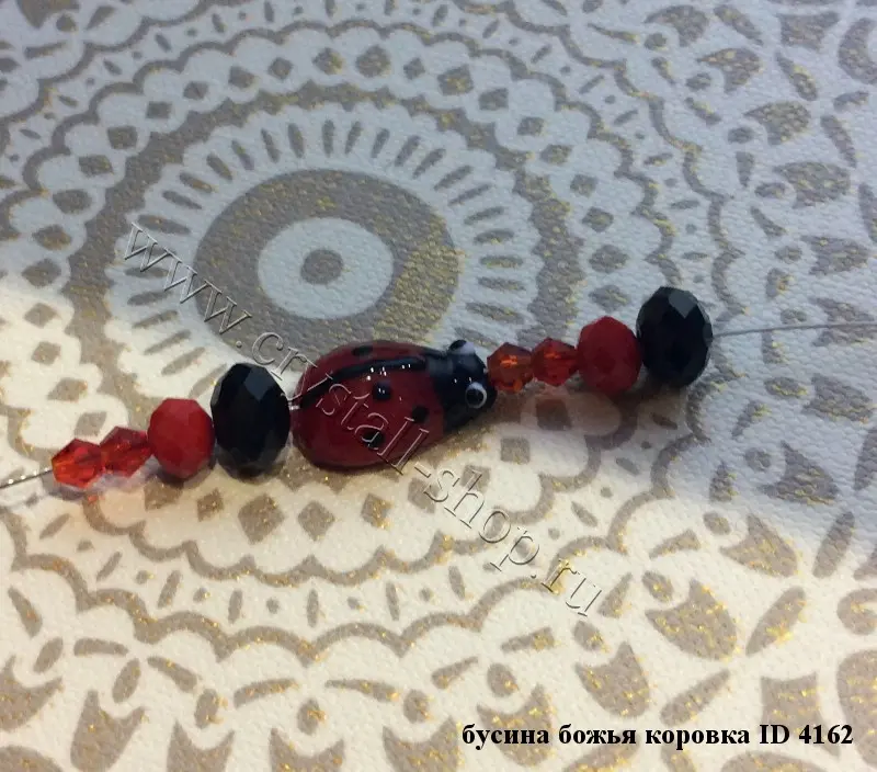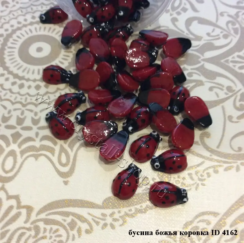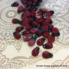 Бусина Божья коровка 15*11 мм стекло, плоское дно, отверстие вдоль