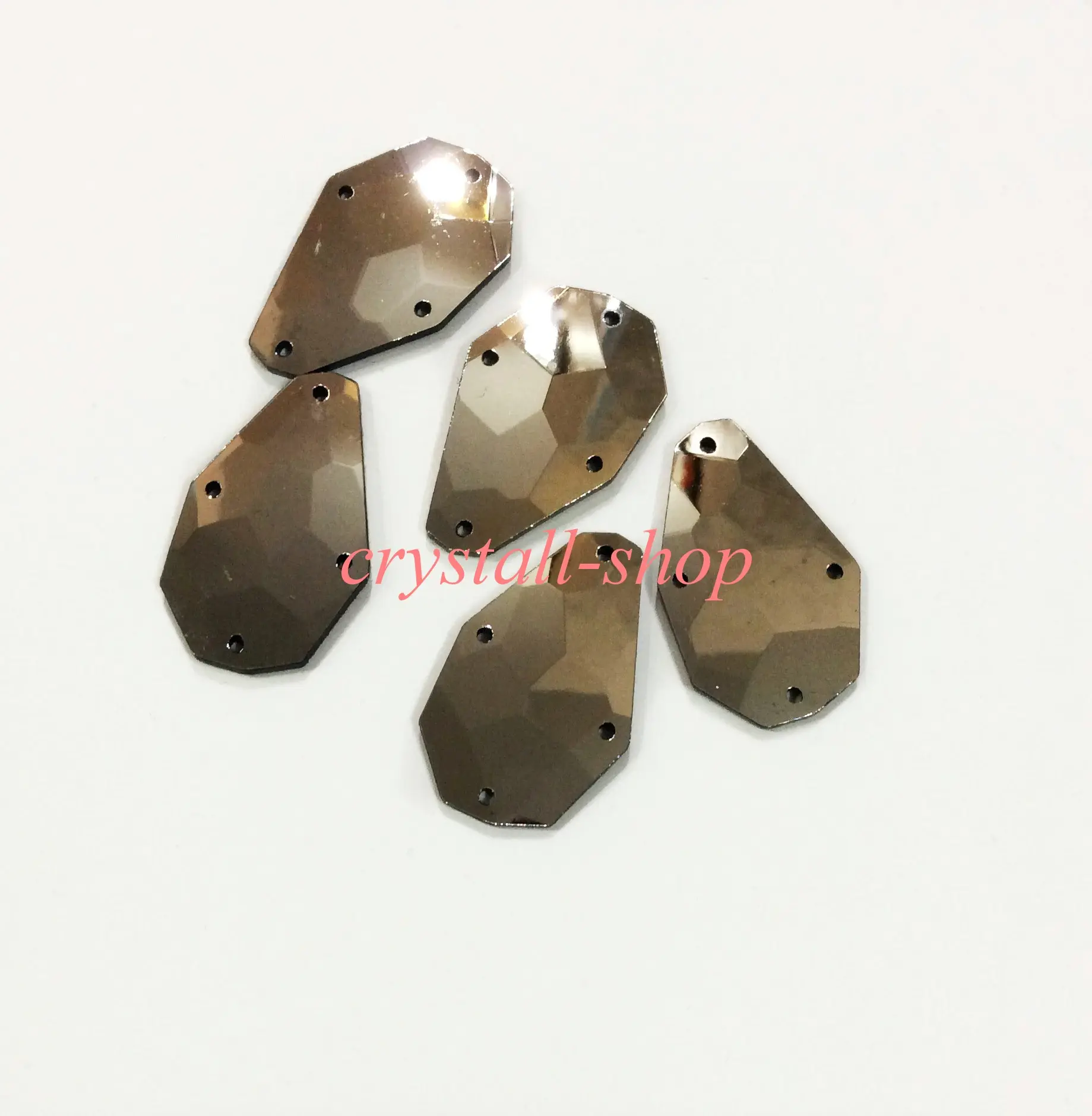 > Зеркало пришивное граненое груша 33*20мм гематит, без пленки, акрил