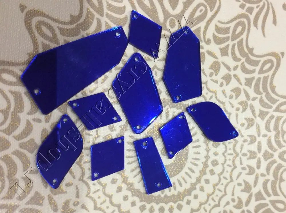 Зеркало пришивное ромб 20*15 мм синее, плоское в пленке, акрил