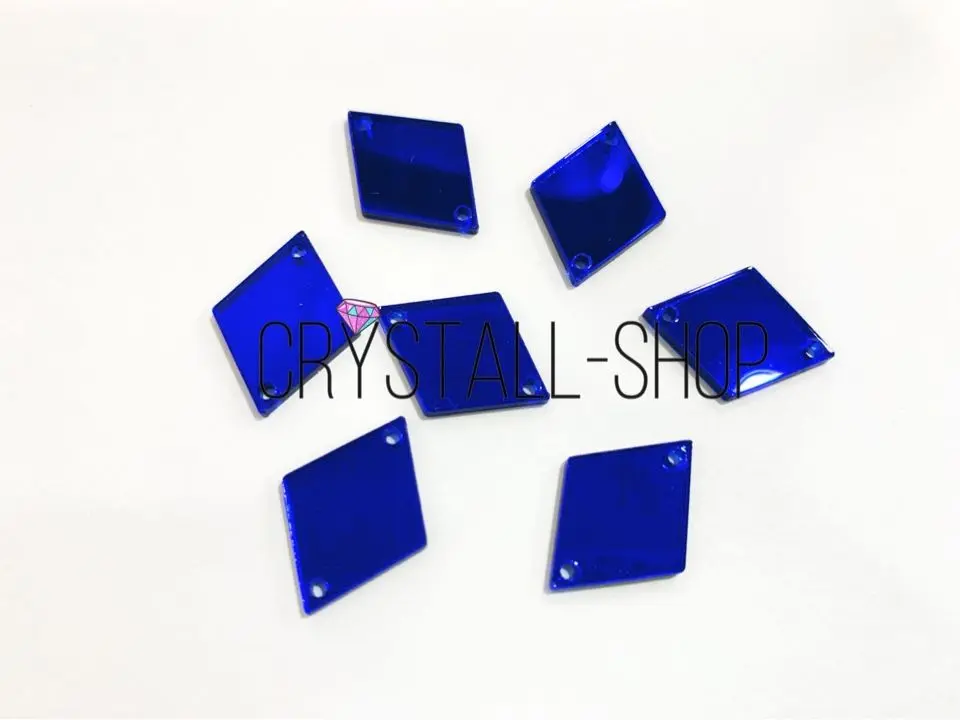 > Зеркало пришивное ромб 20*15 мм синее, плоское в пленке, акрил