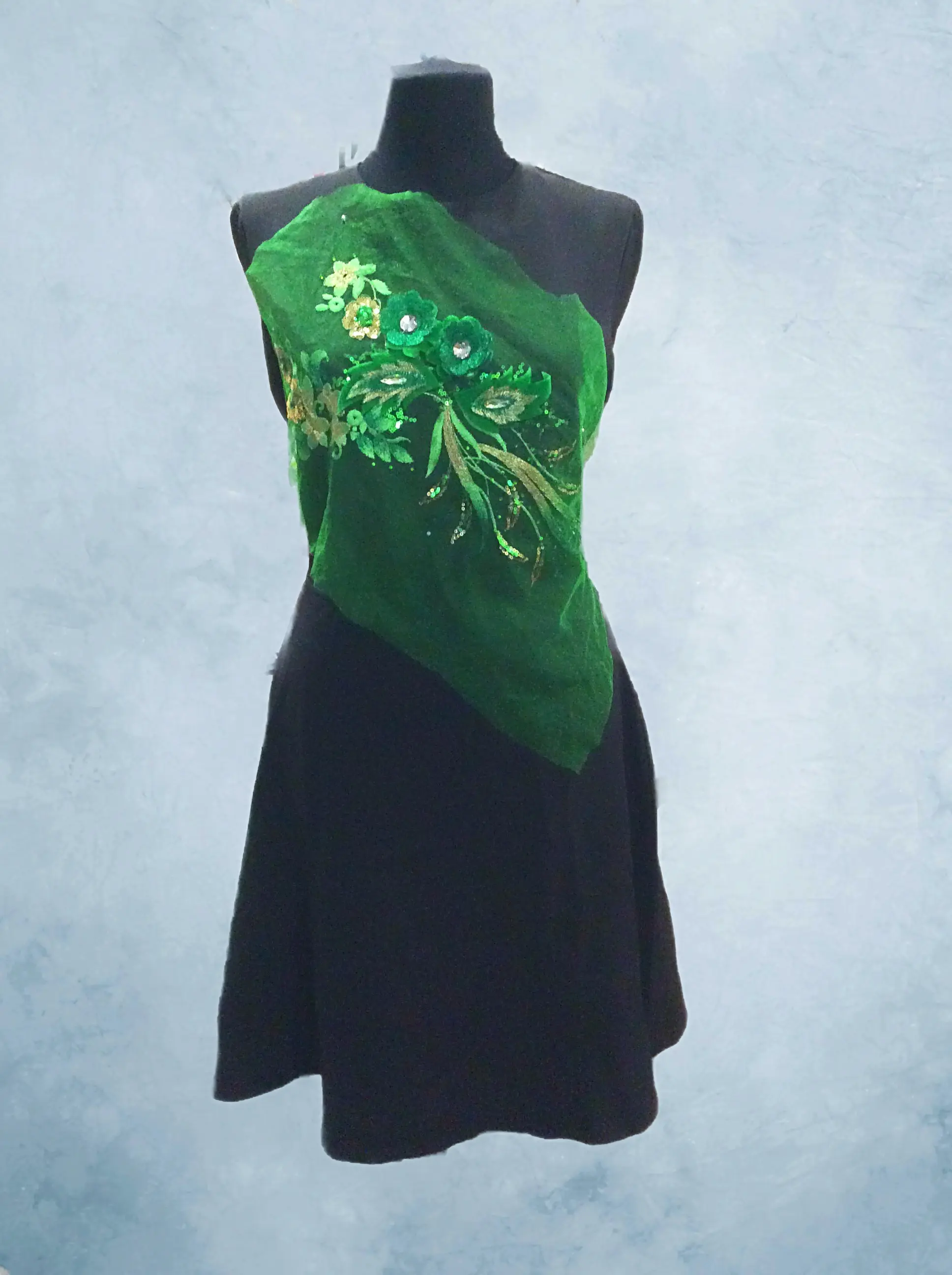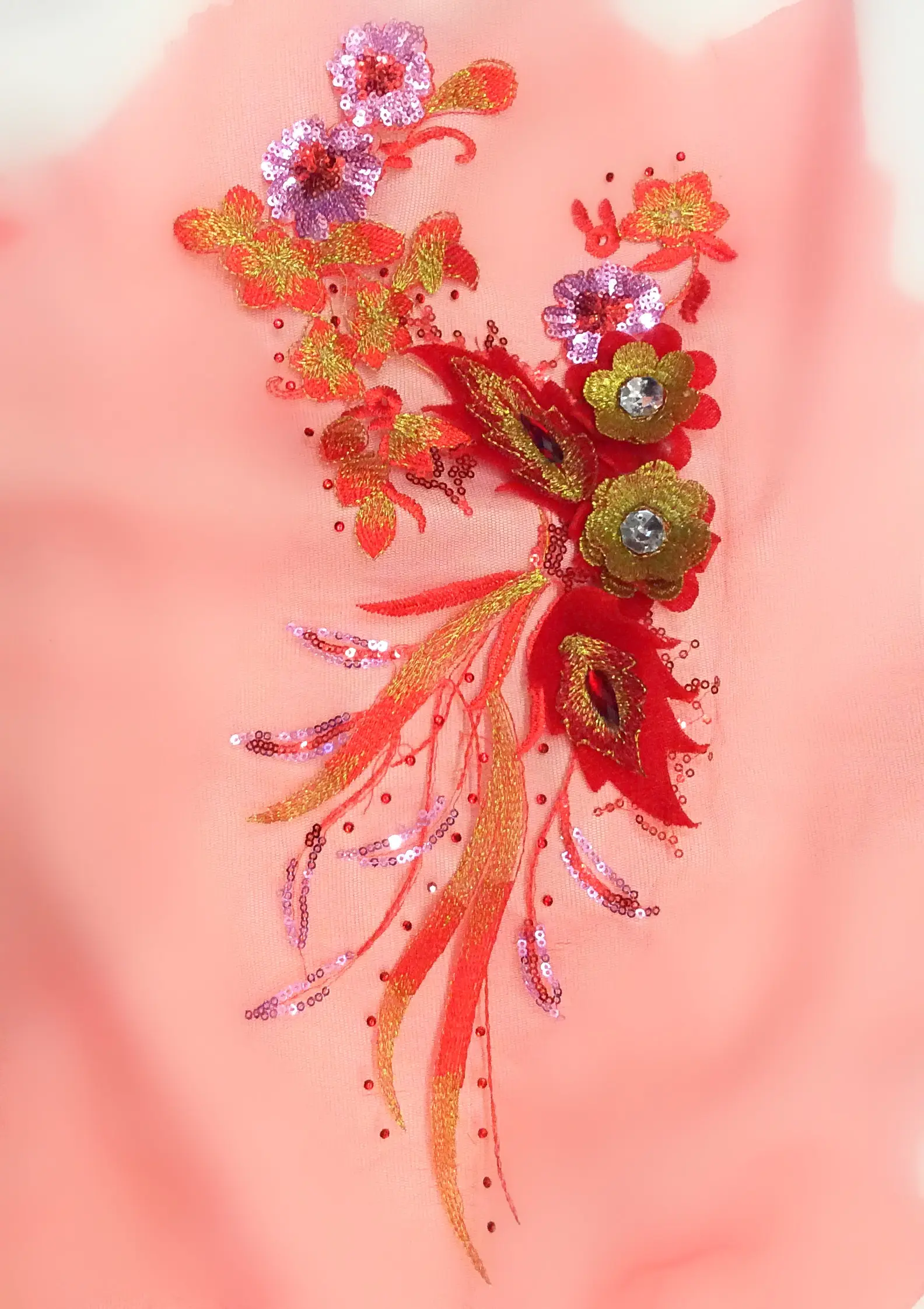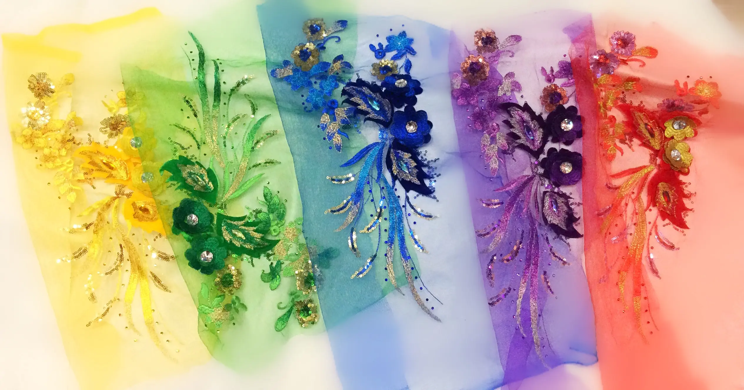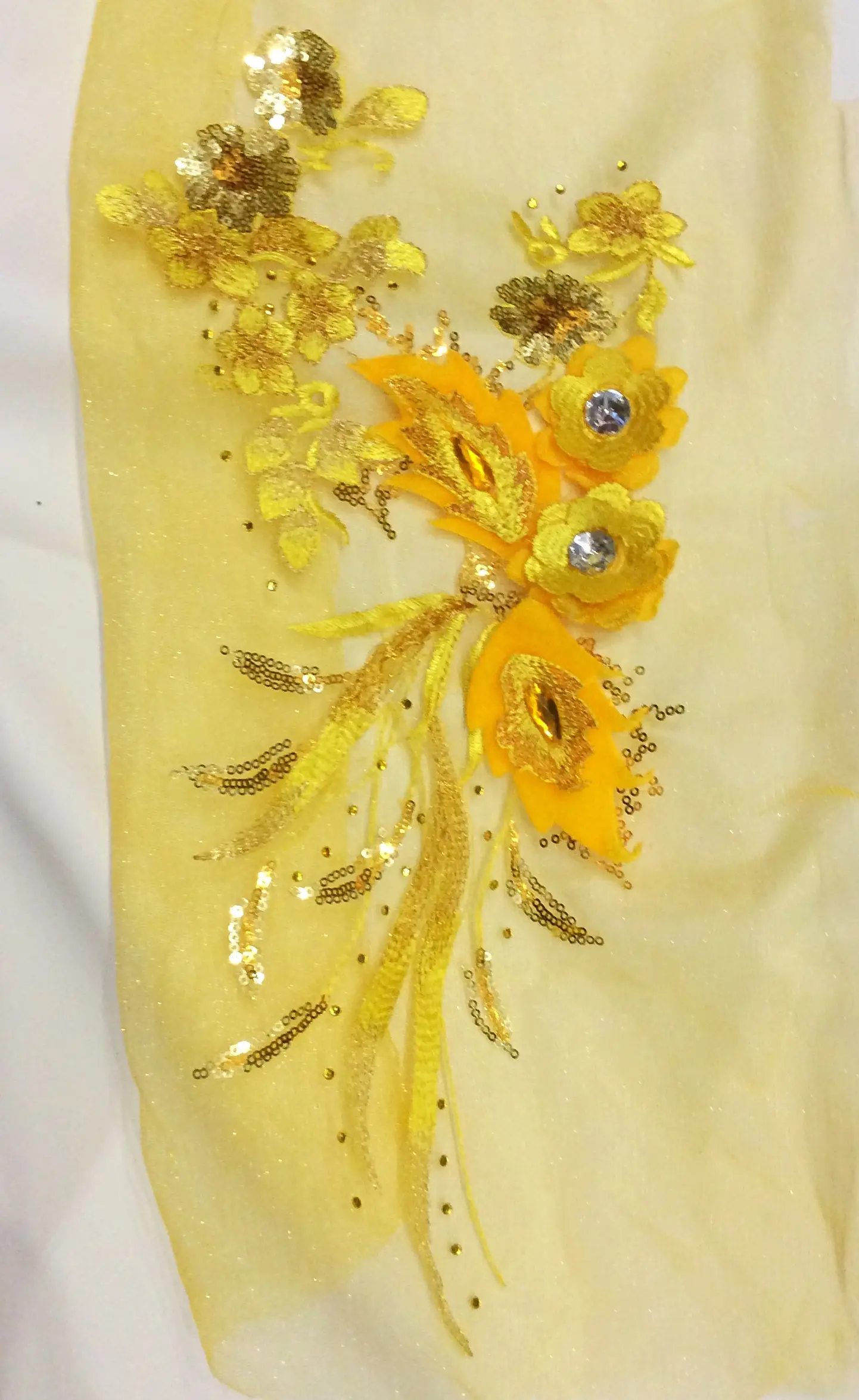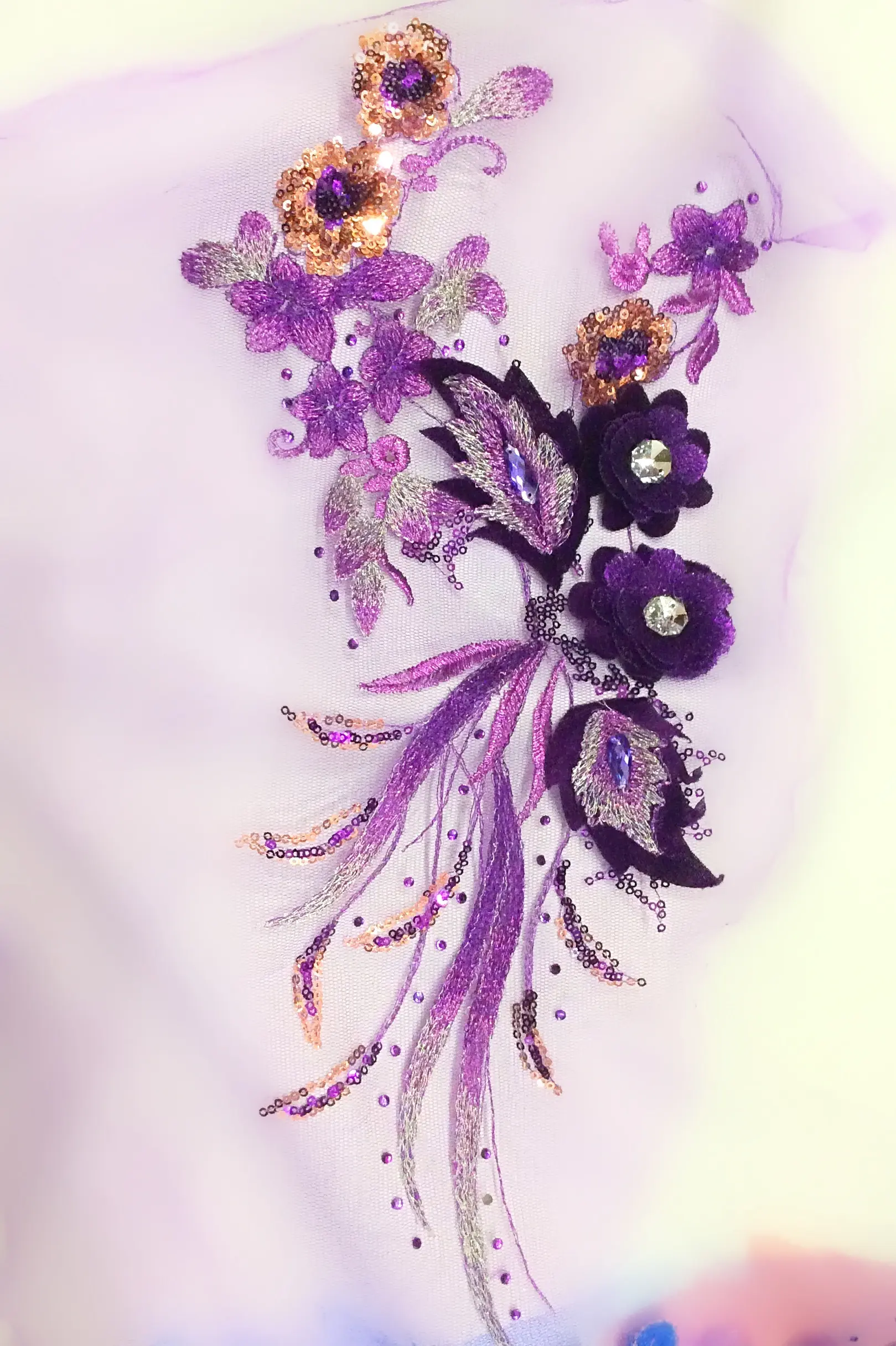 Элемент на сетке, Бархатные лепестки 42*18 пайетки, гладь, стразы акрил, бархат