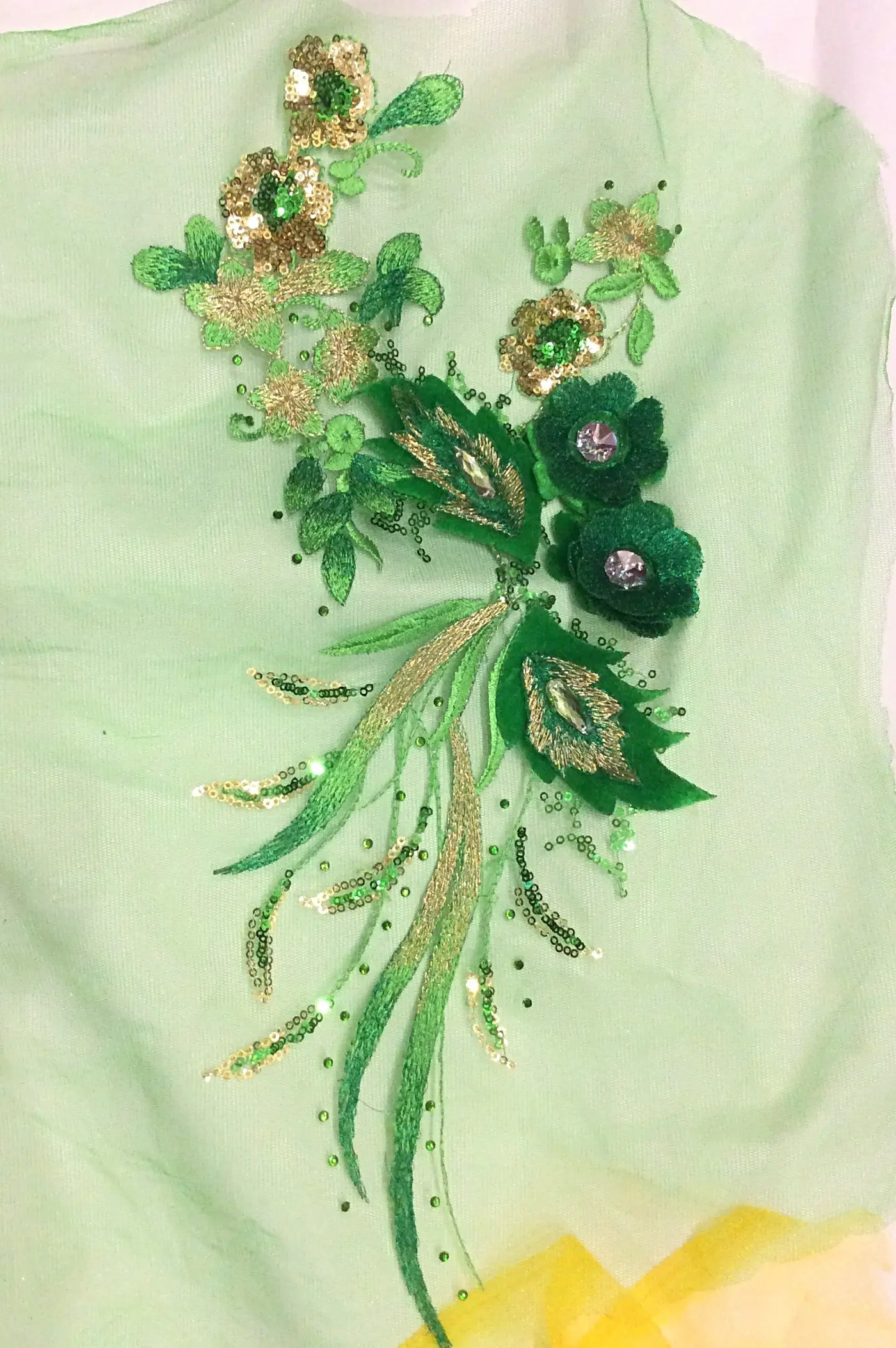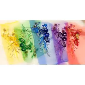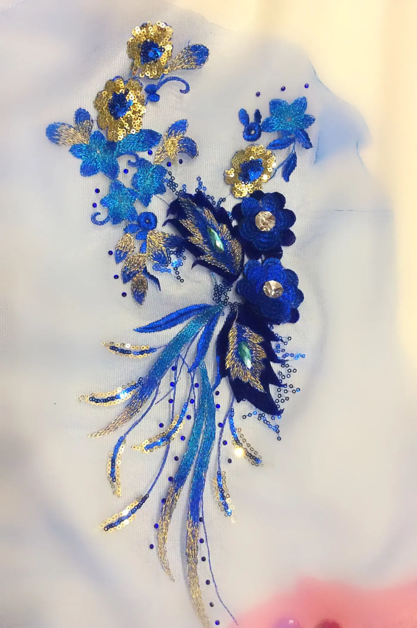 > Элемент на сетке, Бархатные лепестки 42*18 пайетки, гладь, стразы акрил, бархат