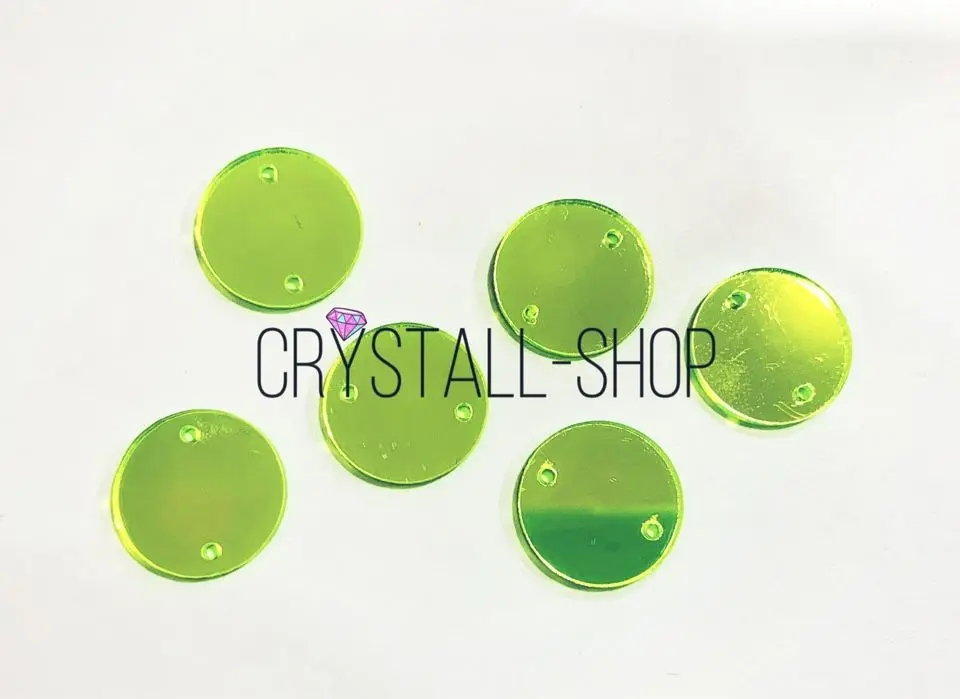 > Зеркало пришивное круг 16мм неоновый салат, в пленке, акрил