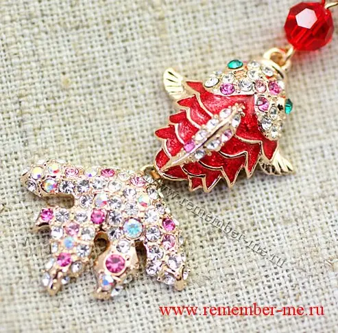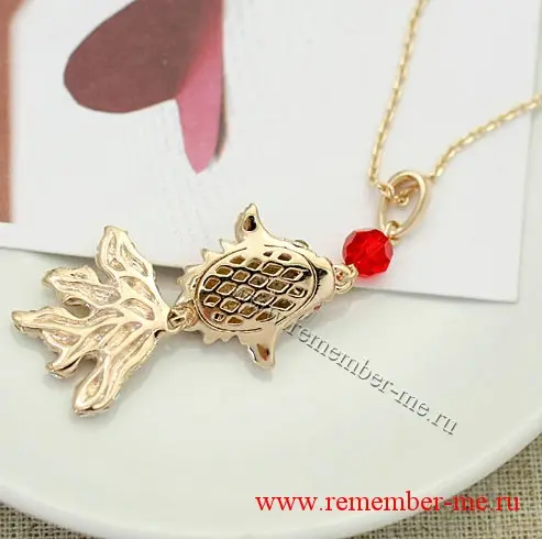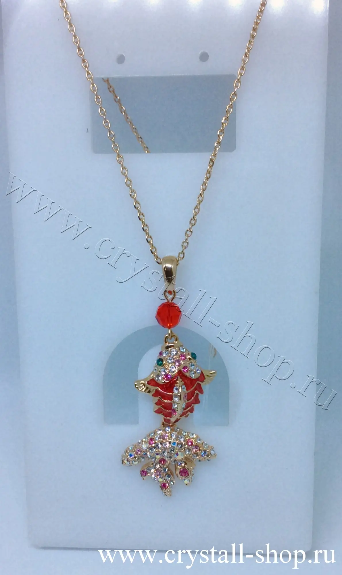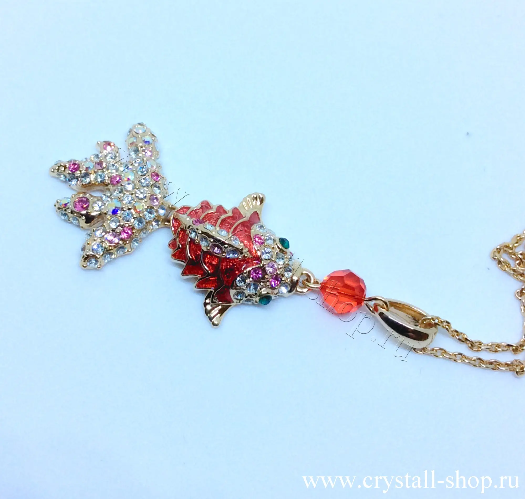 > Подвеска Золотая рыбка, на цепочке, 1768 кристаллы сваровски, эмаль