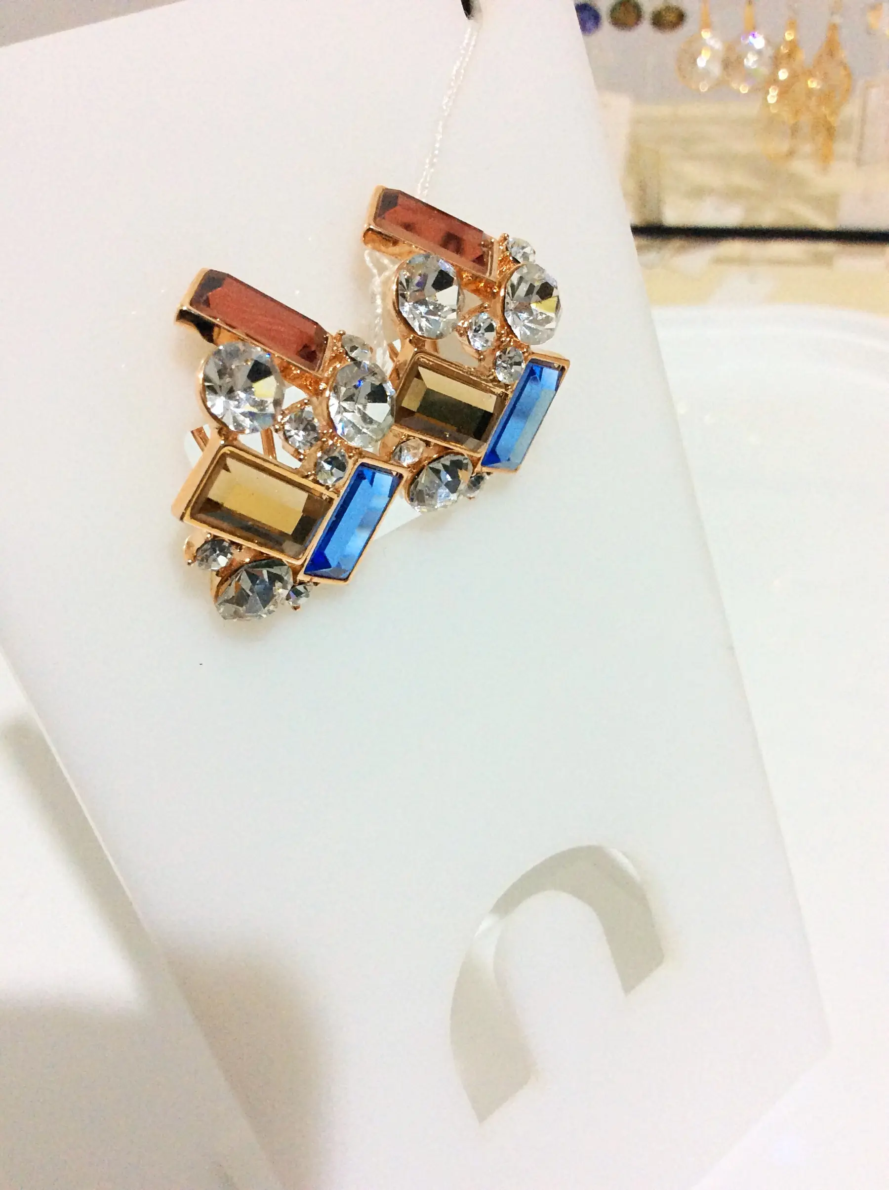 Цвет золото, крепление гвоздик с петлей прижимающей к уху, размер д 25 мм, ш20 мм
