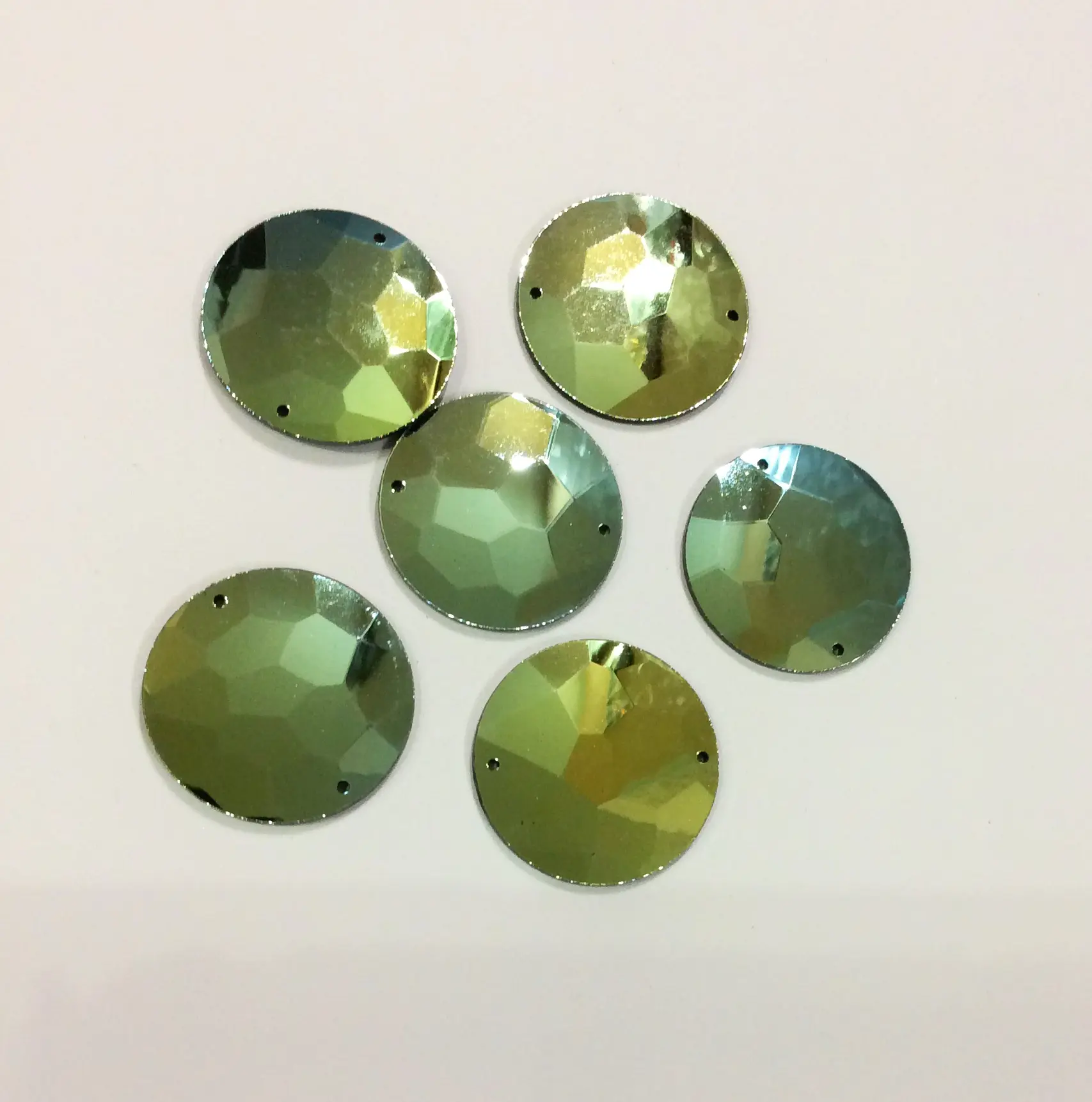Зеркало пришивное граненое круг 30мм зеленое золото, без пленки, акрил